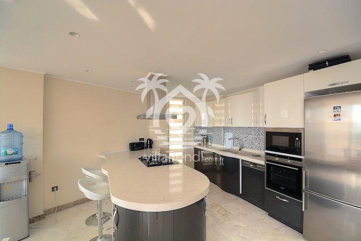 Lüks Mutfak & Salon: Buzdolabından mikrodalga fırına, kahve makinesinden bulaşık makinesine kadar her detayın bulunduğu Amerikan mutfağımızda, sevdiklerinizle keyifli sofralar kurabilirsiniz. ☕🍳