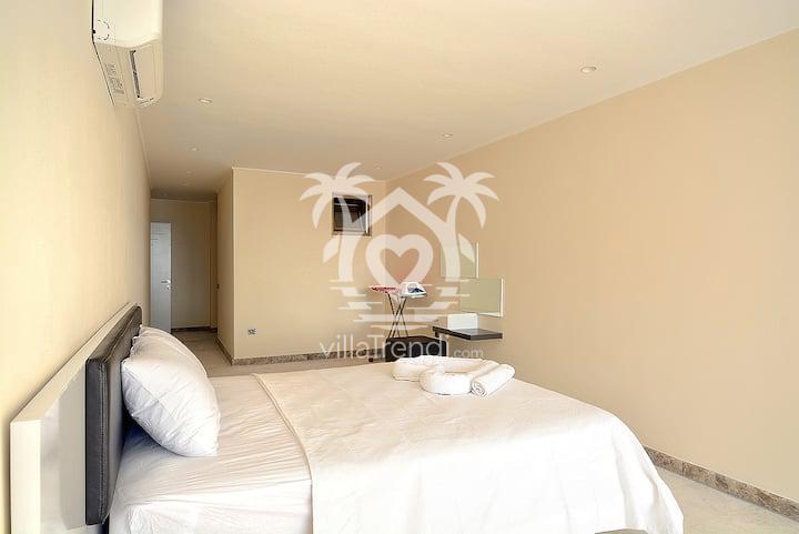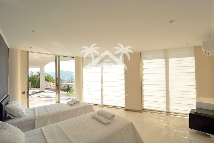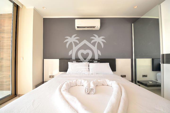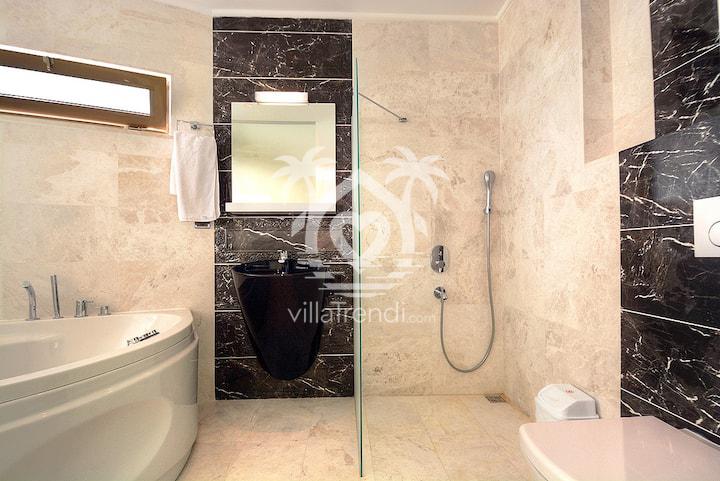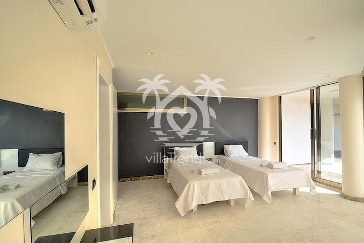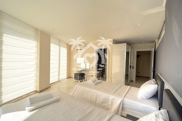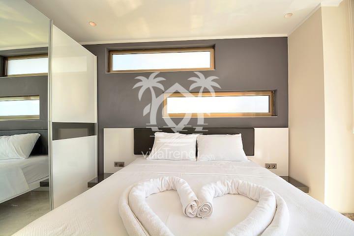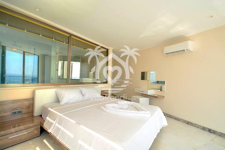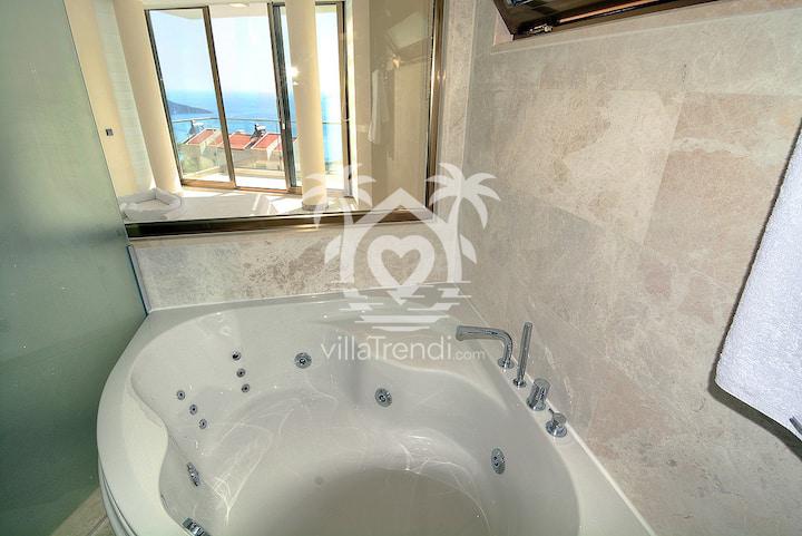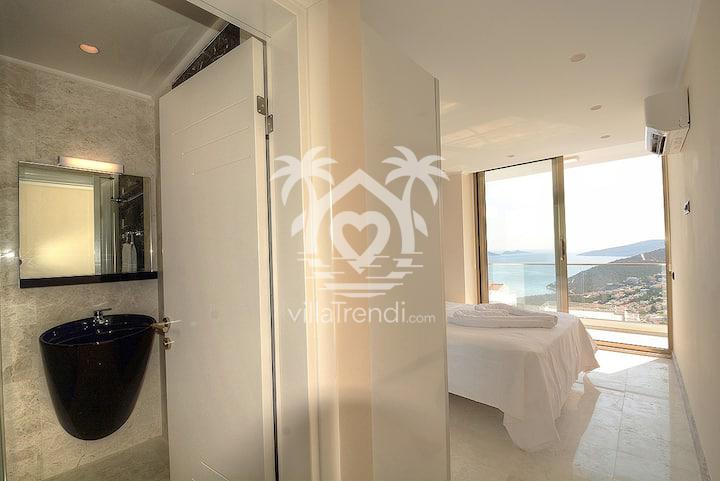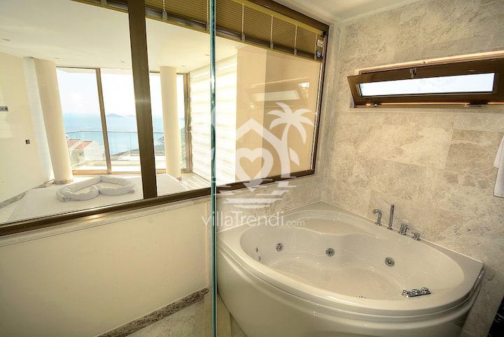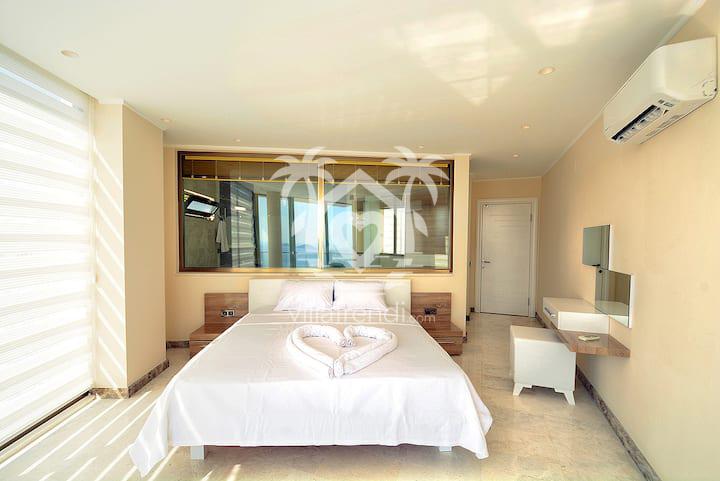 Süit Odalar ve Jakuzi: 4 yatak odasının her biri klimalı ve banyoludur. Master yatak odasında bulunan özel jakuzi, deniz manzarasına karşı günün yorgunluğunu atmanız için tasarlandı. 🛀🌅