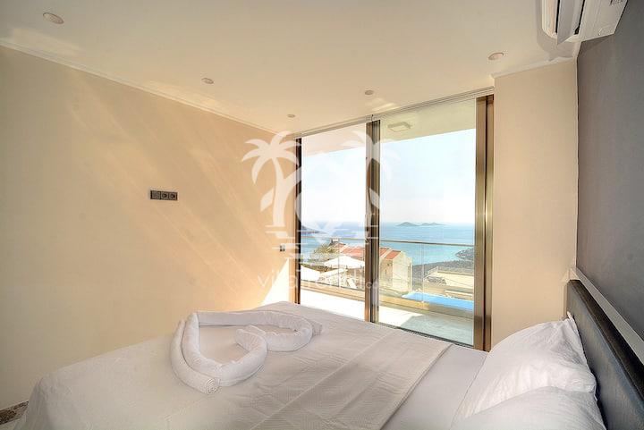 Deniz Manzaralı Havuz: 9,45 m x 3,45 m boyutlarındaki geniş havuzunuzda yüzerken Kalkan’ın eşsiz deniz manzarasının tadını çıkarabilirsiniz. 🏊♂️💙
