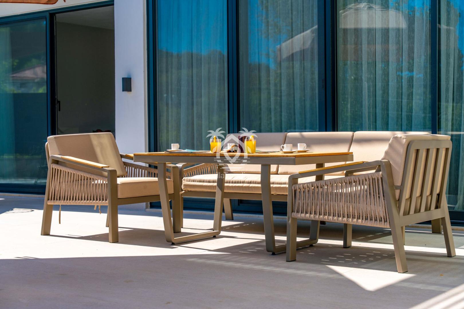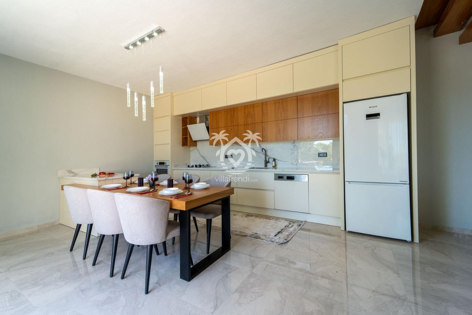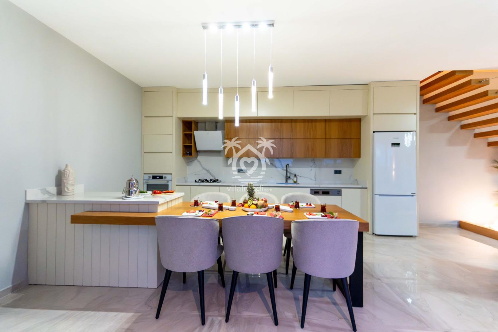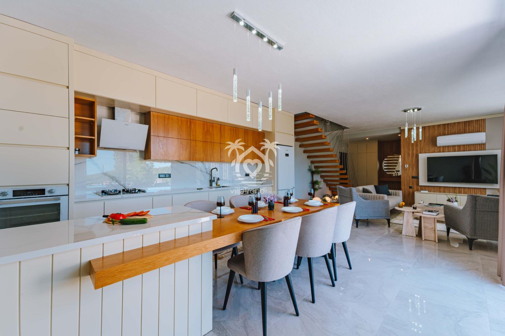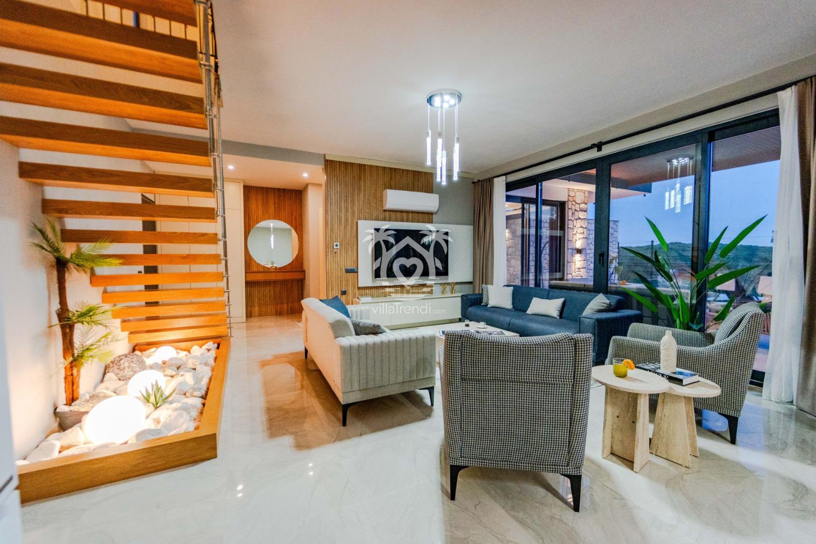 Villamızın iç mekanı, şıklığı ve fonksiyonelliği bir araya getiren parçalarla döşenmiştir: