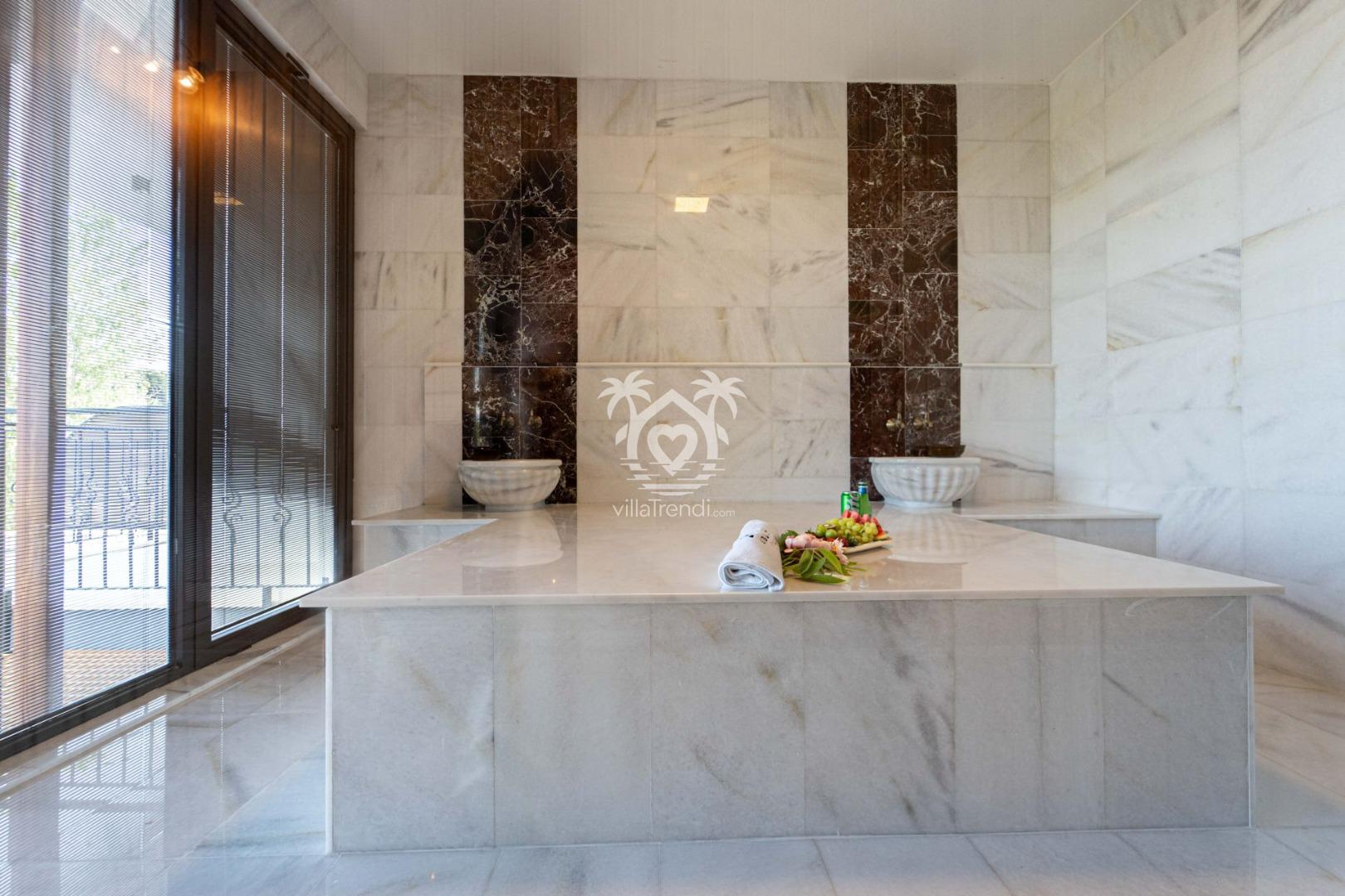Türk Hamamı & Sauna: Villanın içerisinde size özel olarak tasarlanmış hamam ve sauna odası ile her gün yenilenin. 🧘♂️🔥