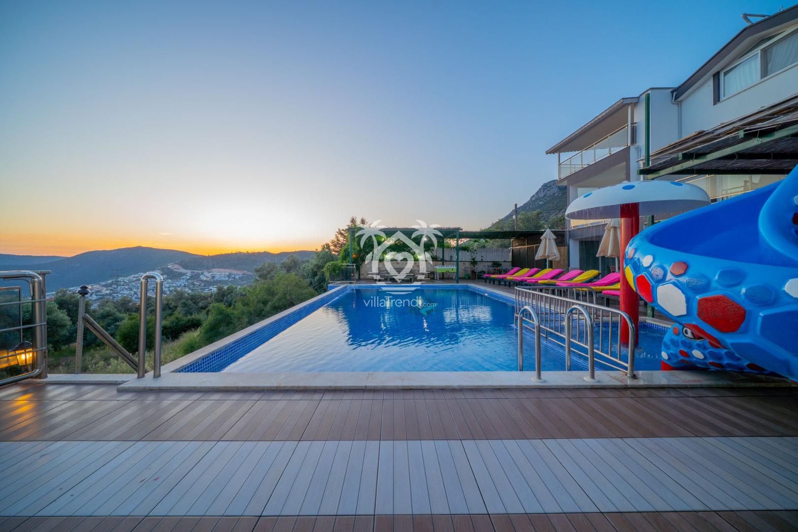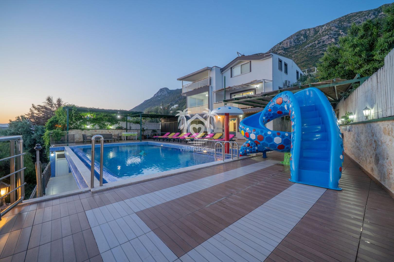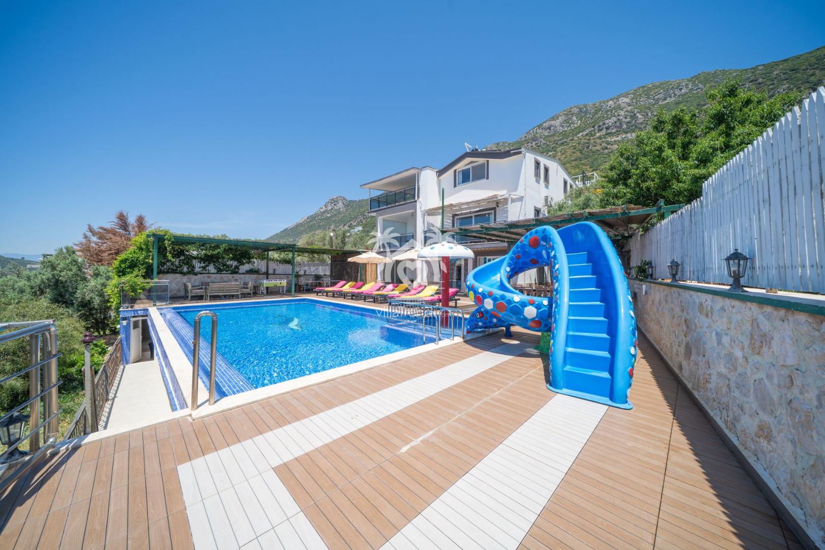Eğlence Dolu Açık Alan: Büyük bir kaydırak ile donatılmış havuz, küçük misafirlerinizin (ve kendini genç hisseden büyüklerin!) güvenle ve neşeyle vakit geçirmesini sağlar.