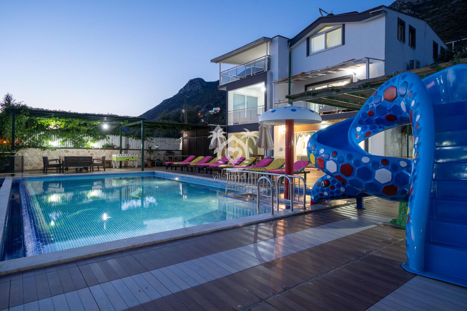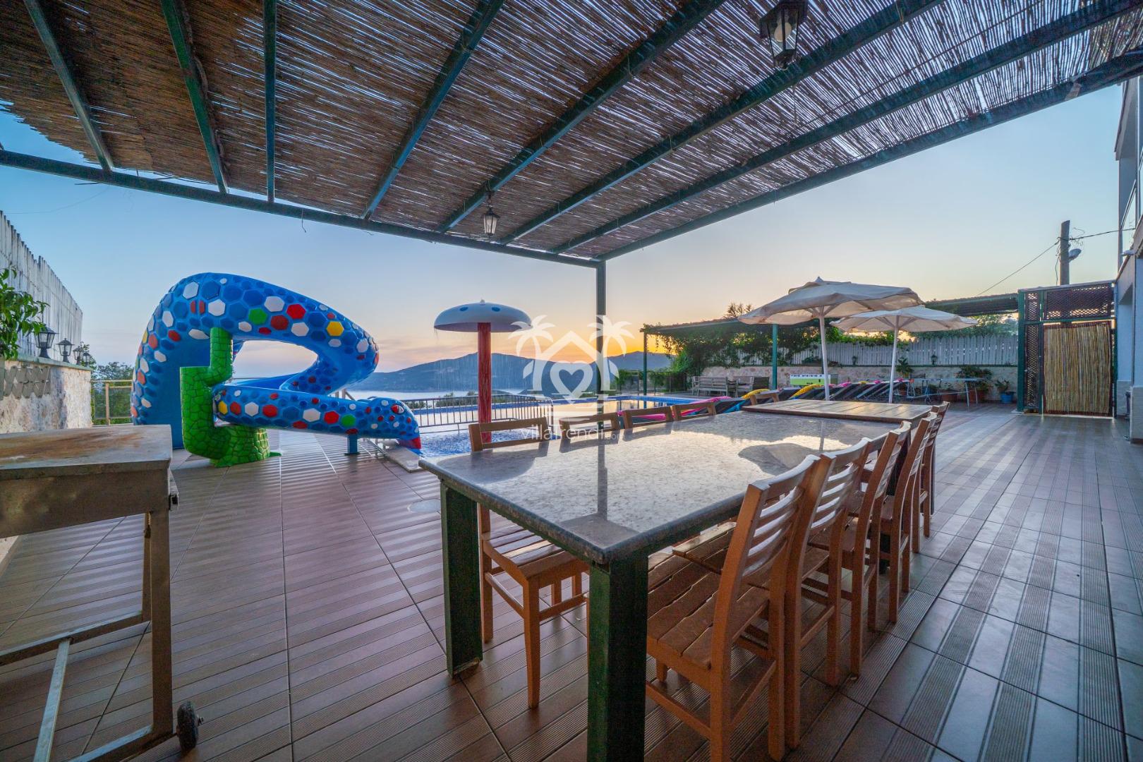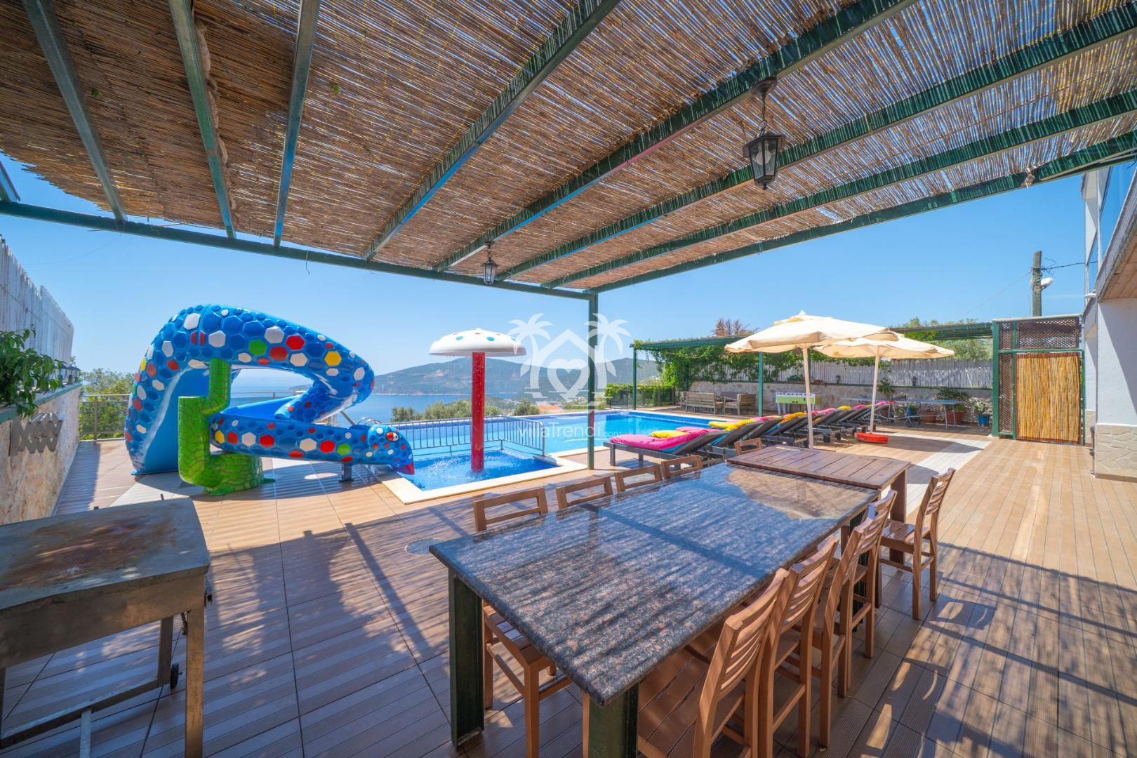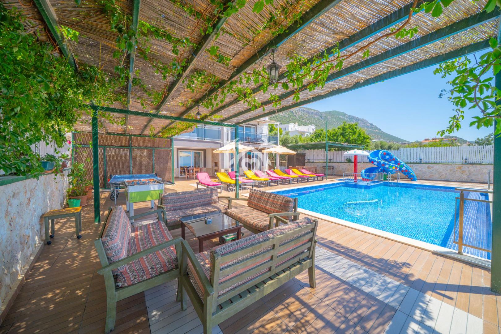 Eğlence Dolu Açık Alan: Büyük bir kaydırak ile donatılmış havuz, küçük misafirlerinizin (ve kendini genç hisseden büyüklerin!) güvenle ve neşeyle vakit geçirmesini sağlar.
