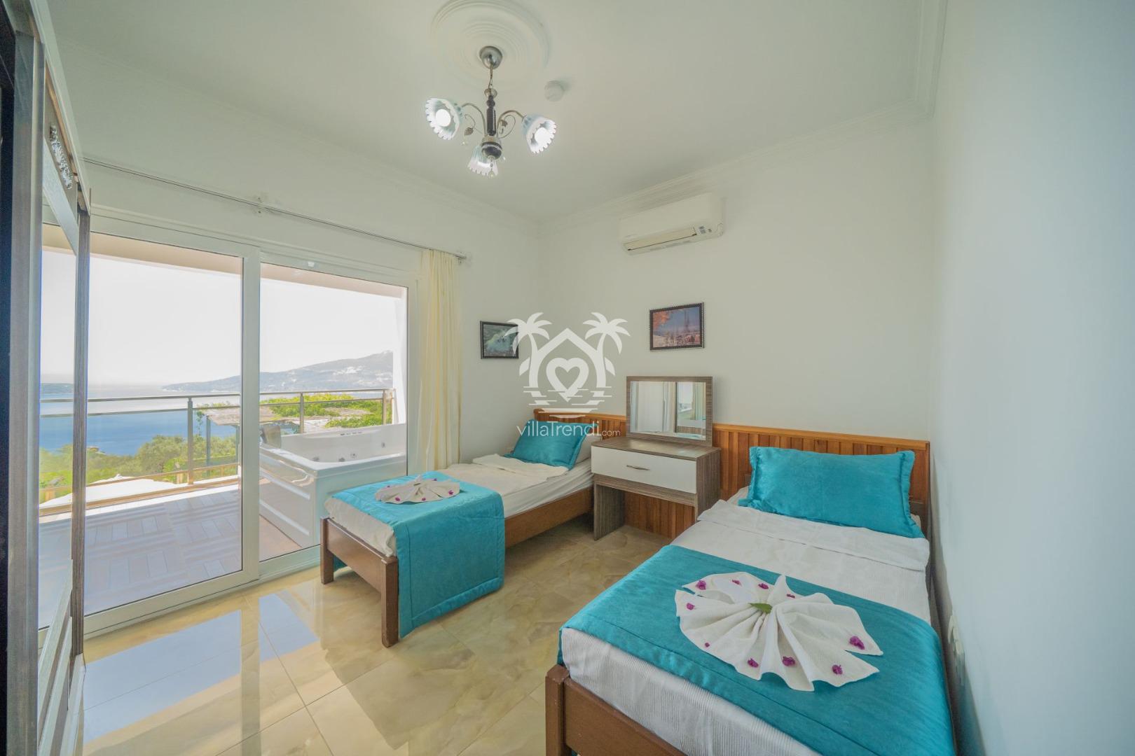 Deniz manzaralı Villa Sunshine, 6 kişilik geniş konaklama kapasitesiyle Kalkan’da, Kördere’de yer alıyor.