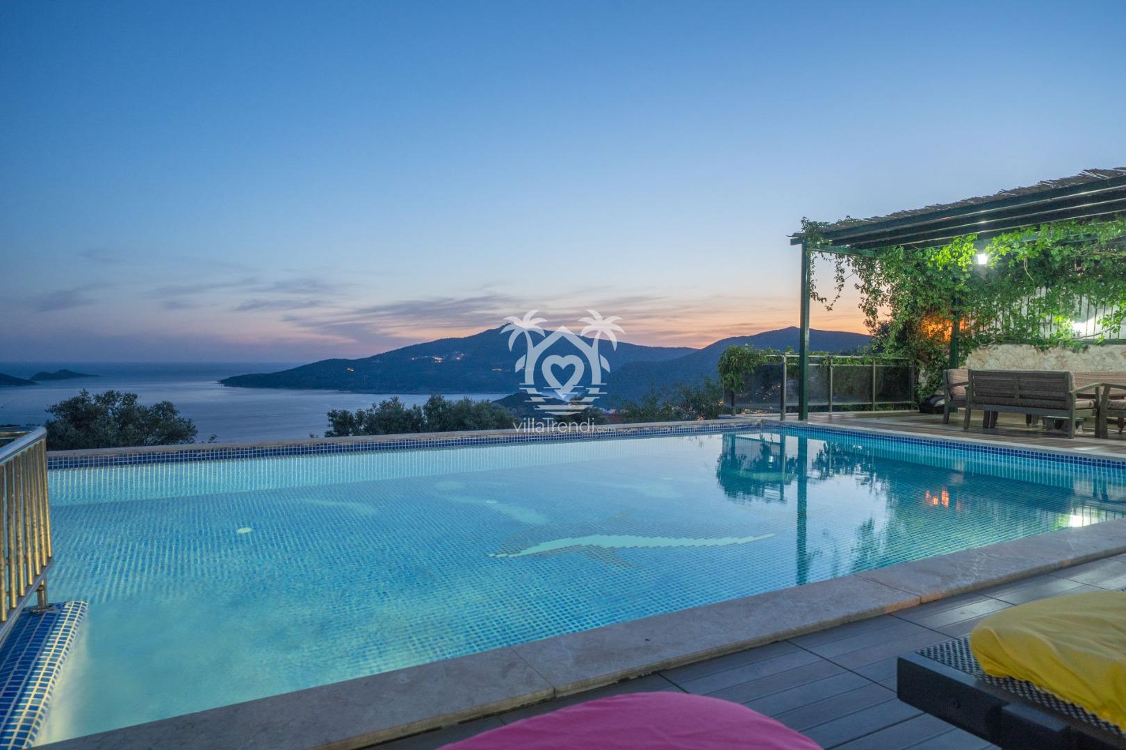 Antalya'nın turistik ilçesi Kalkan'da muhteşem deniz manzarasına sahip Kördere'de yer alan Villa Sunrise, altı kişilik bir konaklama imkânı sunuyor.