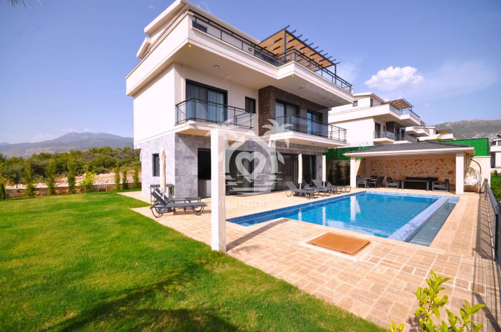 Sekiz kişilik konaklama kapasitesi ve beş adet yatak sayesinde, geniş aileler veya arkadaş grupları ev ortamında keyifle vakit geçirebilir. Dört yatak odasının her biri ferah tasarlanmıştır ve dört banyo kullanım pratikliği sağlar. Jakuzi, klima ve uydu gibi donanımlar ise size ev konforunu aratmaz. Dış alanda bulunan barbekü bölümü, sevdiklerinizle birlikte açık havada lezzetli yemekler hazırlamanız için düşünülmüştür. Bununla birlikte korunaklı yapıda tasarlanan yüzme havuzu, dış gözlerden uzak bir ortamda dinlenme fırsatı yaratır.