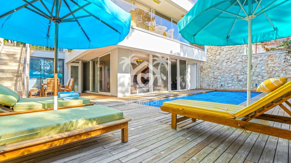 Bu konut, Kalkan - Ortaalan Kiralık Villa arayışında olanlar için ideal bir seçimdir. Villa altı kişiyi ağırlar. Üç yatak odasında çift kişilik yataklar ve klimalı özel banyolar sunar. Misafirler, havuzlu villa kiralama taleplerine uygun korunaklı bahçede özgürce vakit geçirir. Yüzme alanı yaklaşık 7 metre uzunluğunda ve 3,5 metre genişliğinde tasarlanmıştır. Derinliği ise 1,55 metredir. Çocuk havuzu olmasa da güvenli bir deneyim yaratmak adına düzenli bakım yapılmaktadır.
