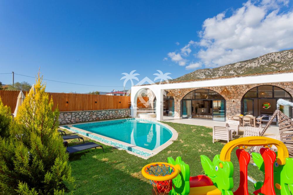 - Özellikler: Korunaklı havuz ve bahçe, jakuzi (havuz terasında), geniş bahçe, çocuk oyun parkı, salıncak, barbekü, tam donanımlı mutfak, konforlu salon, klima, internet, özel banyolu yatak odaları