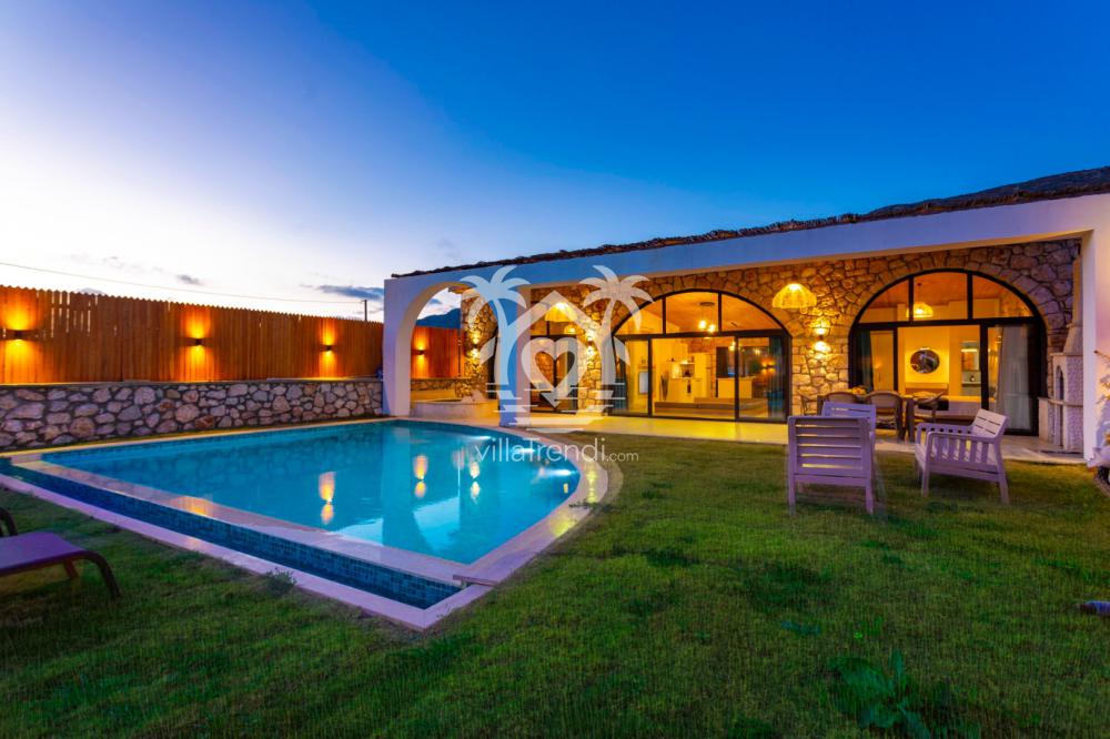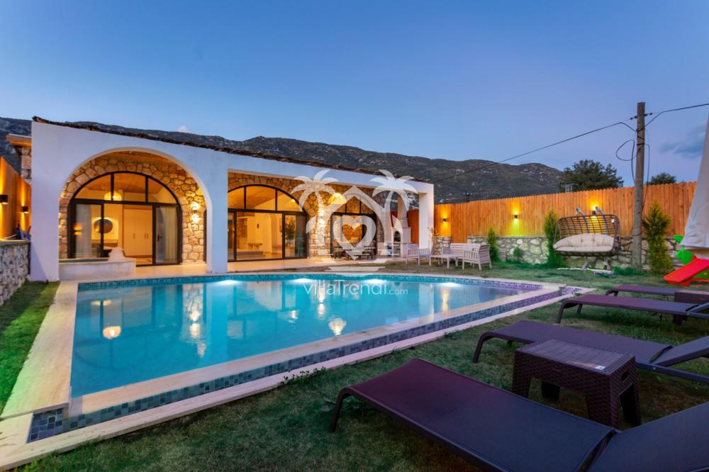 - Konforlu ve Donanımlı İç Mekan: Modern detaylarla zenginleştirilmiş taş mimarisi, villanın iç mekanlarında da hissedilir. Konforlu oturma grubu, klima, internet, tam donanımlı mutfak gibi olanaklar, ev rahatlığında bir tatil imkanı sunar. Her yatak odasında özel banyo ve tuvalet bulunması da konforu artırır.