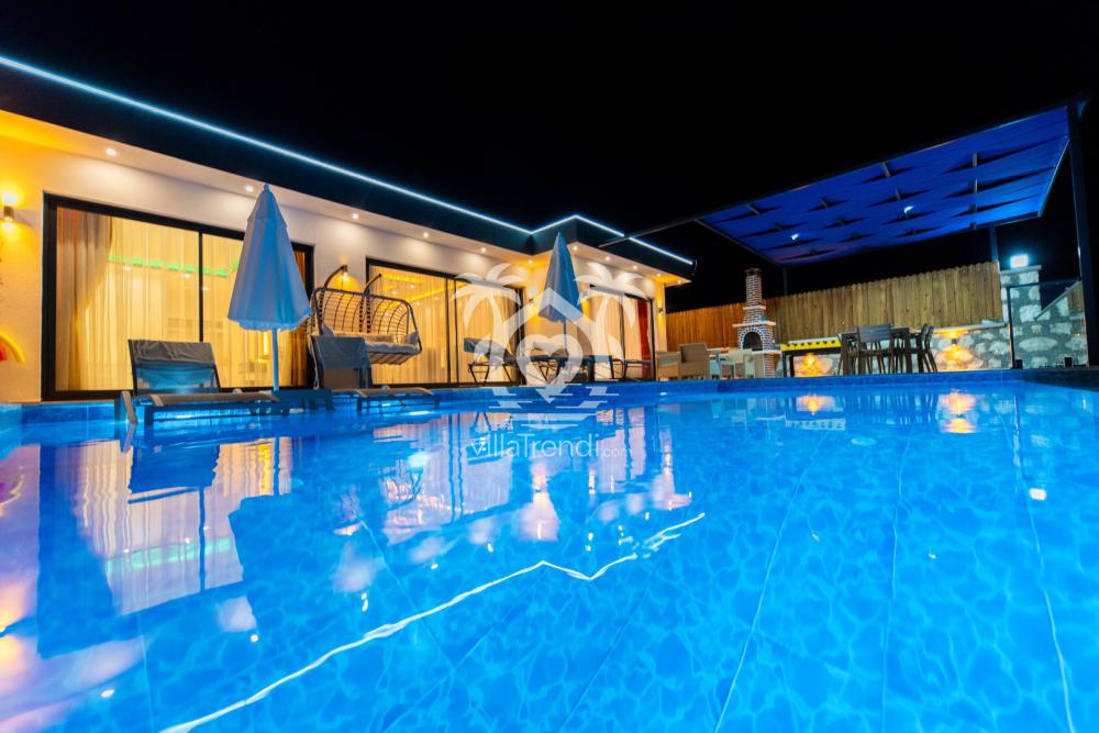 Sonsuzluk havuzu villanın en cazip yaşam ve keyif alanını oluşturuyor. Eşsiz manzaraya karşı yüzmek, şezlonglarda güneşlenmek ve bahçede vakit geçirmek iyi hissettiriyor. Bahçe yeşil dokusu, donanımı ve manzarasıyla huzurlu bir atmosfer yaratmayı başarıyor. Gönlünüzce dinlenebilir, bahçede eğlenebilir, langırt masasında sıkı bir mücadeleye girişebilirsiniz.