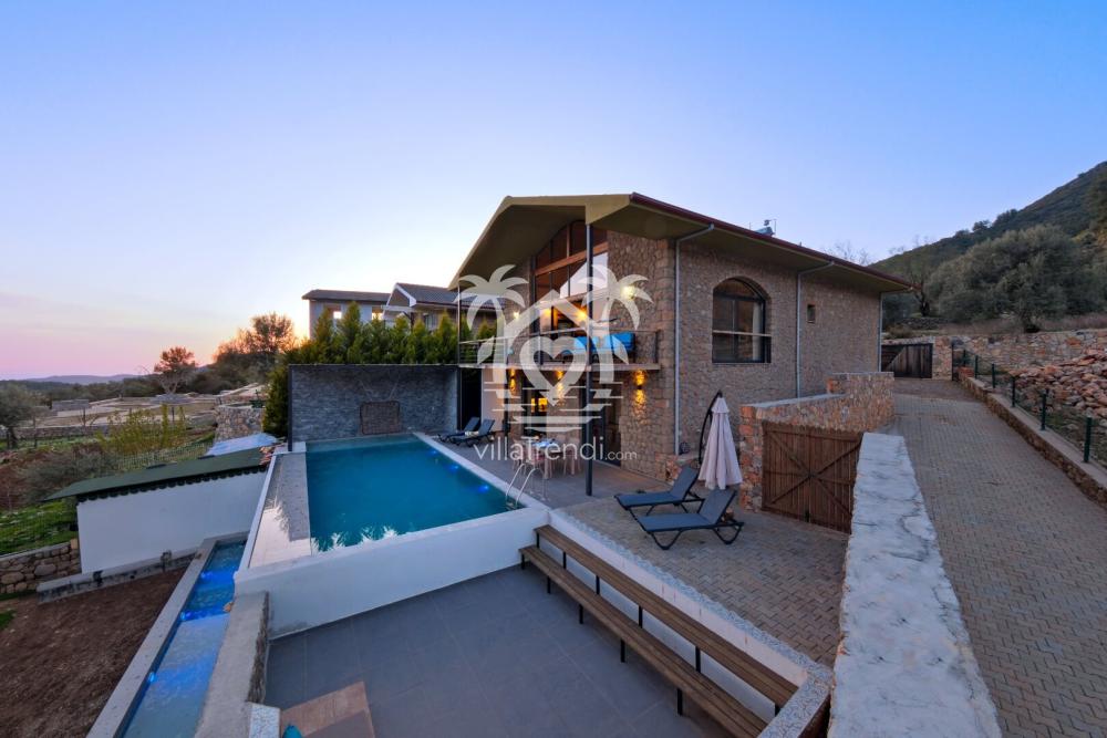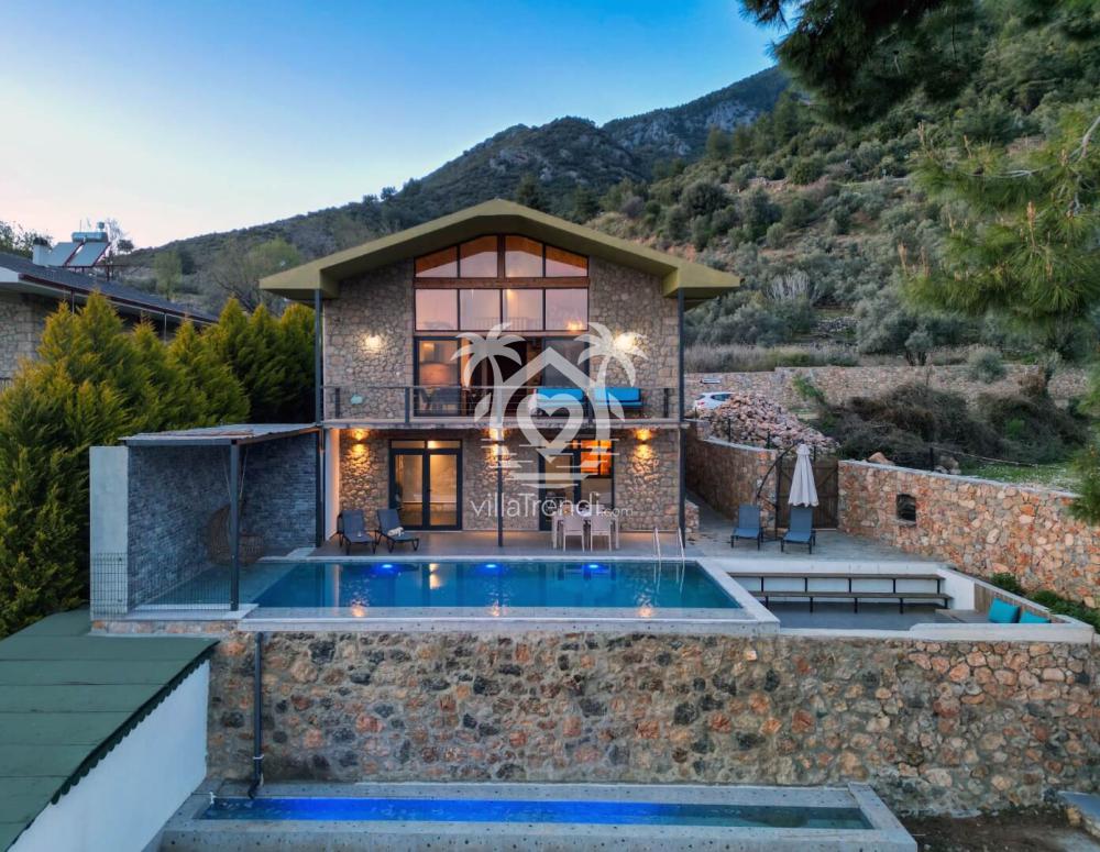 Geniş havuz alanı, şık ve konforlu oturma grubu, özel barbekü alanı gibi detaylarla zenginleştirilmiş dış mekânı, keyifli ve konforlu bir iç mekânla tamamlanmaktadır. Villanın oturma odası, tam donanımlı mutfağı, bir yatak odasında çift kişilik yatak ve alt katta yer alan iki yatak odasında da çift kişilik yatak bulunmaktadır. Modern ve zarif bir şekilde dekore edilmiş olan Villa Ayza, Fethiye tatilinizi doğanın içinde, güven ve huzurla geçirmeniz için özenle tasarlanmıştır.