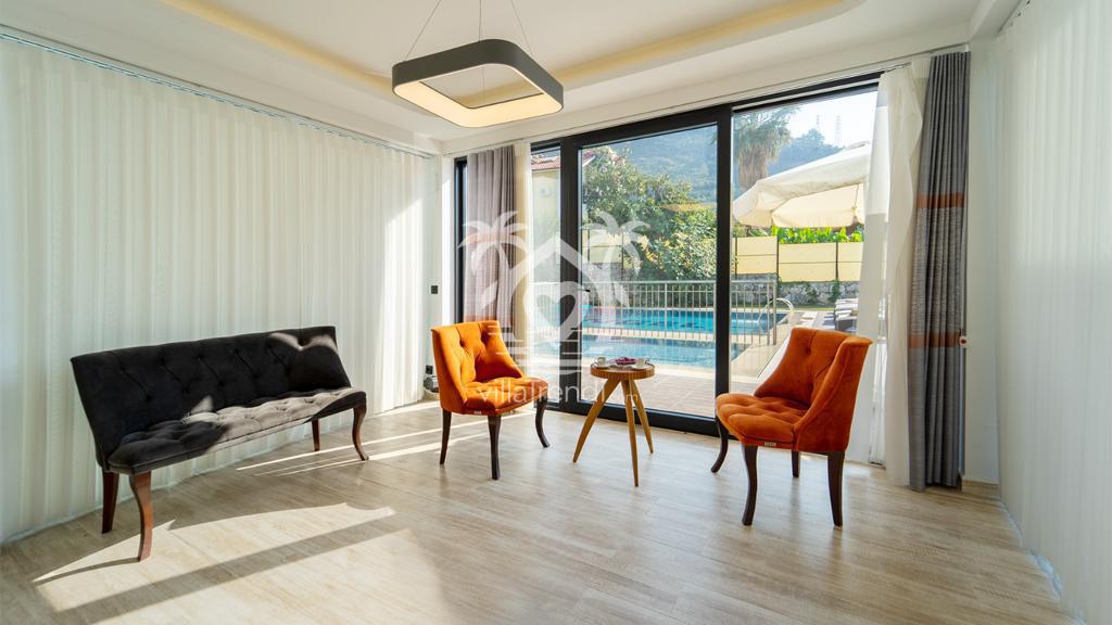 6 kişilik lüks villa Ekin Ölüdeniz manzarasına karşı eşsiz bir konumda yer alıyor.