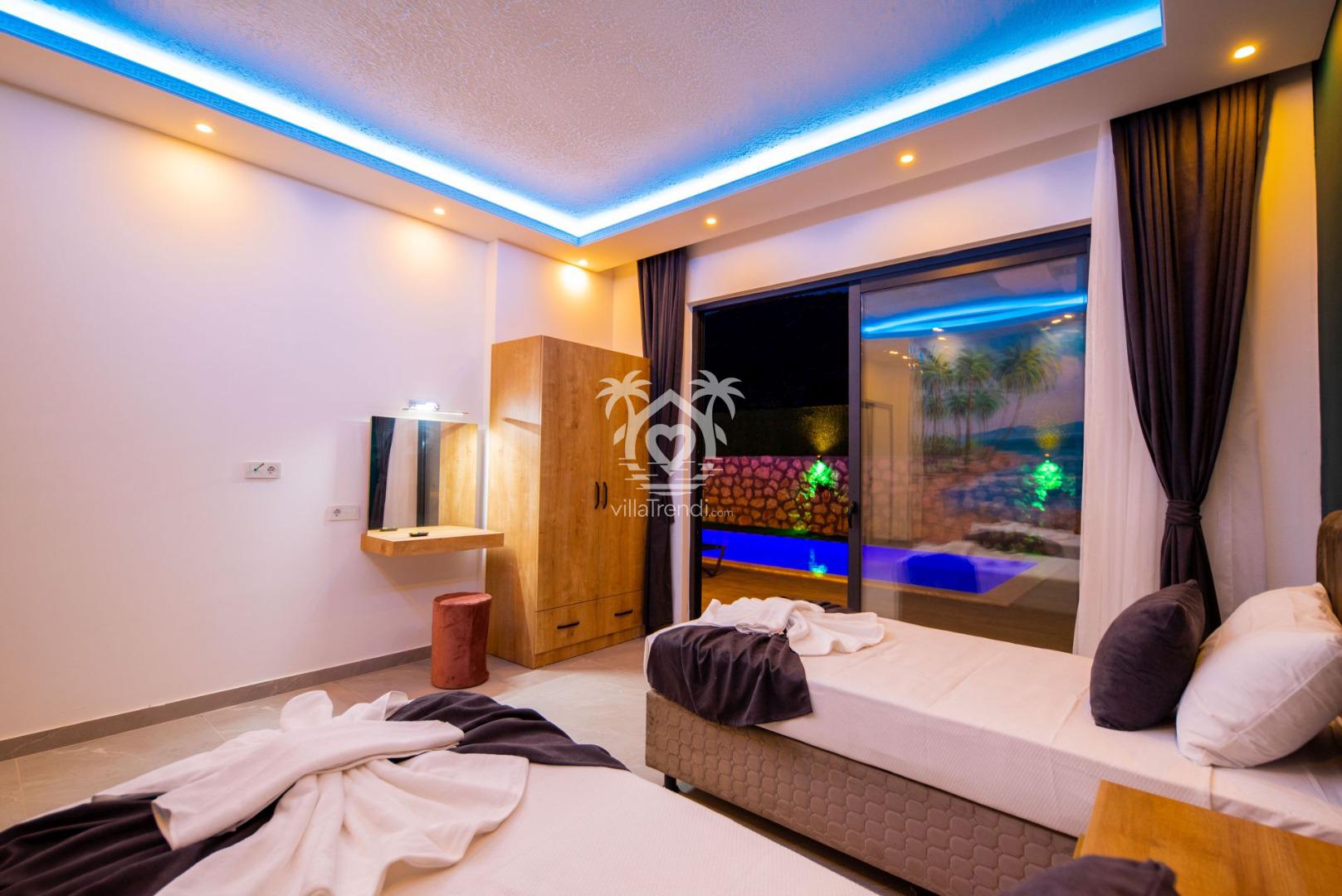 4 kişilik Villa Water Moon, Kalkan’ın Çavdır beldesinde yer alıyor. Korunaklı çevresiyle konuklarına mahrem alan sunan villa, dubleks mimariye sahip.