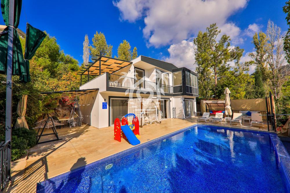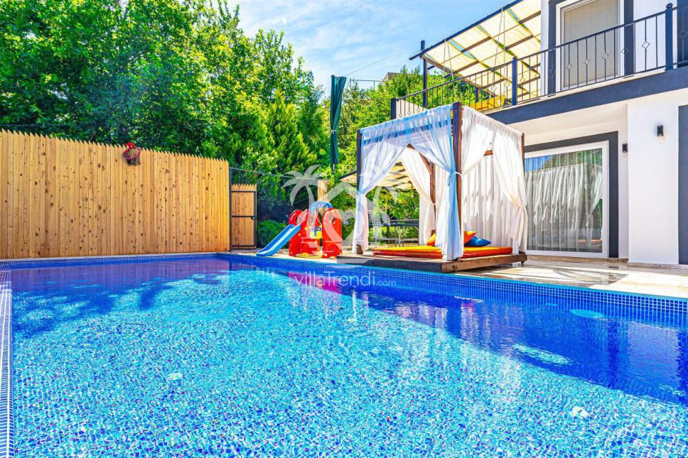 - Dış Mekan: Özel yüzme havuzu (kademeli derinlik), geniş bahçe, havuz terası, şezlonglar, güneş şemsiyesi, yemek masası, mangal, salıncak, hamak, oyun parkı, özel otopark, Wi-Fi internet bağlantısı.