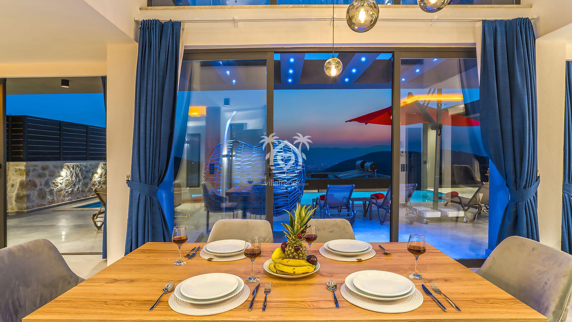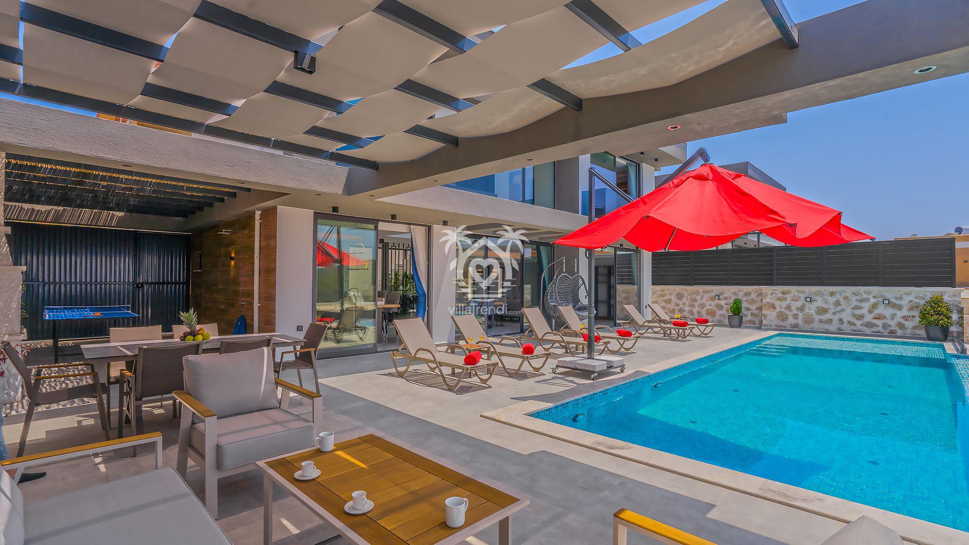 Denize sıfır özelliğiyle villadan çok malikane ihtişamına sahip olan Villa Kalkan Zümrüt, tam 10 kişilik misafir kapasitesiyle geniş ailelere ve arkadaş gruplarına aradıkları konforu sunuyor