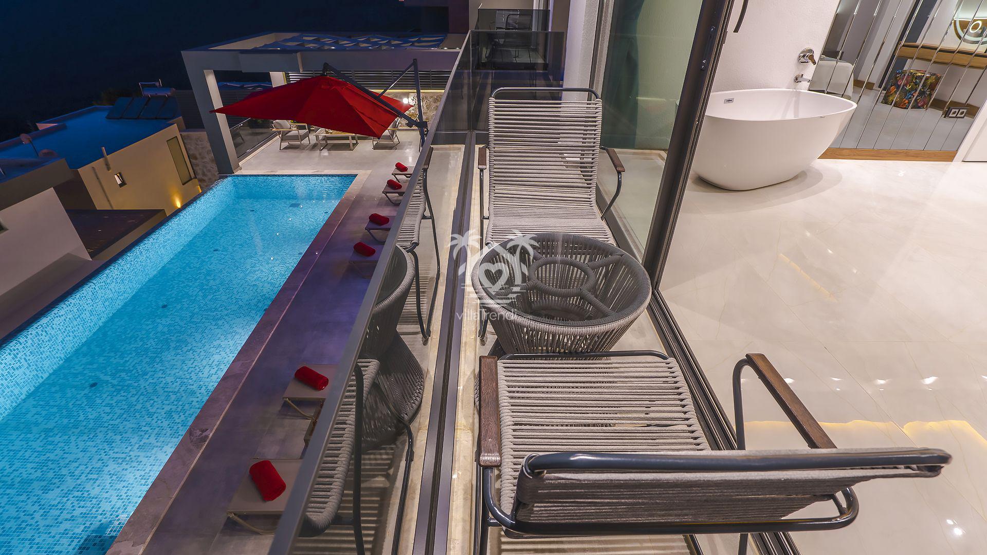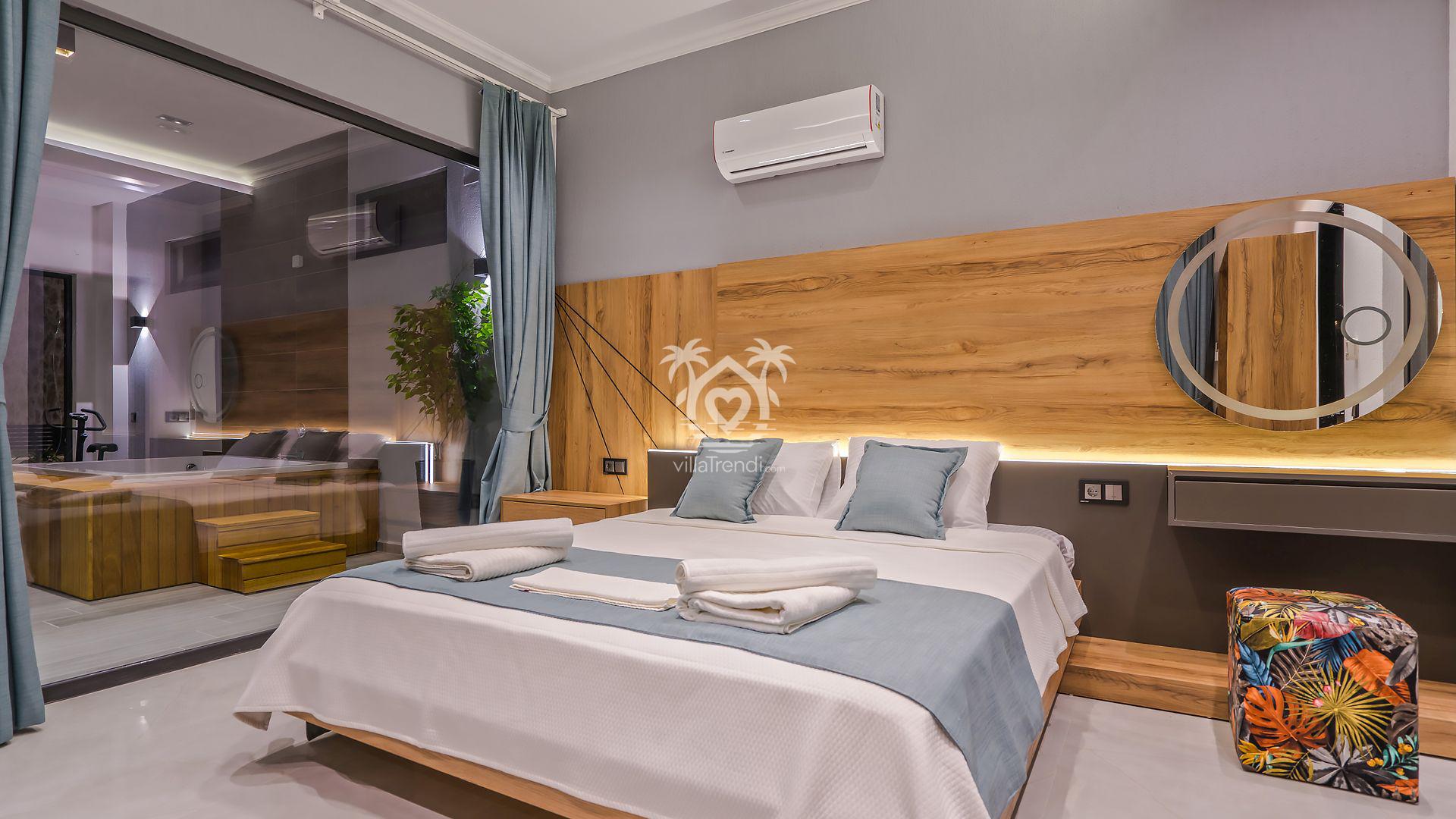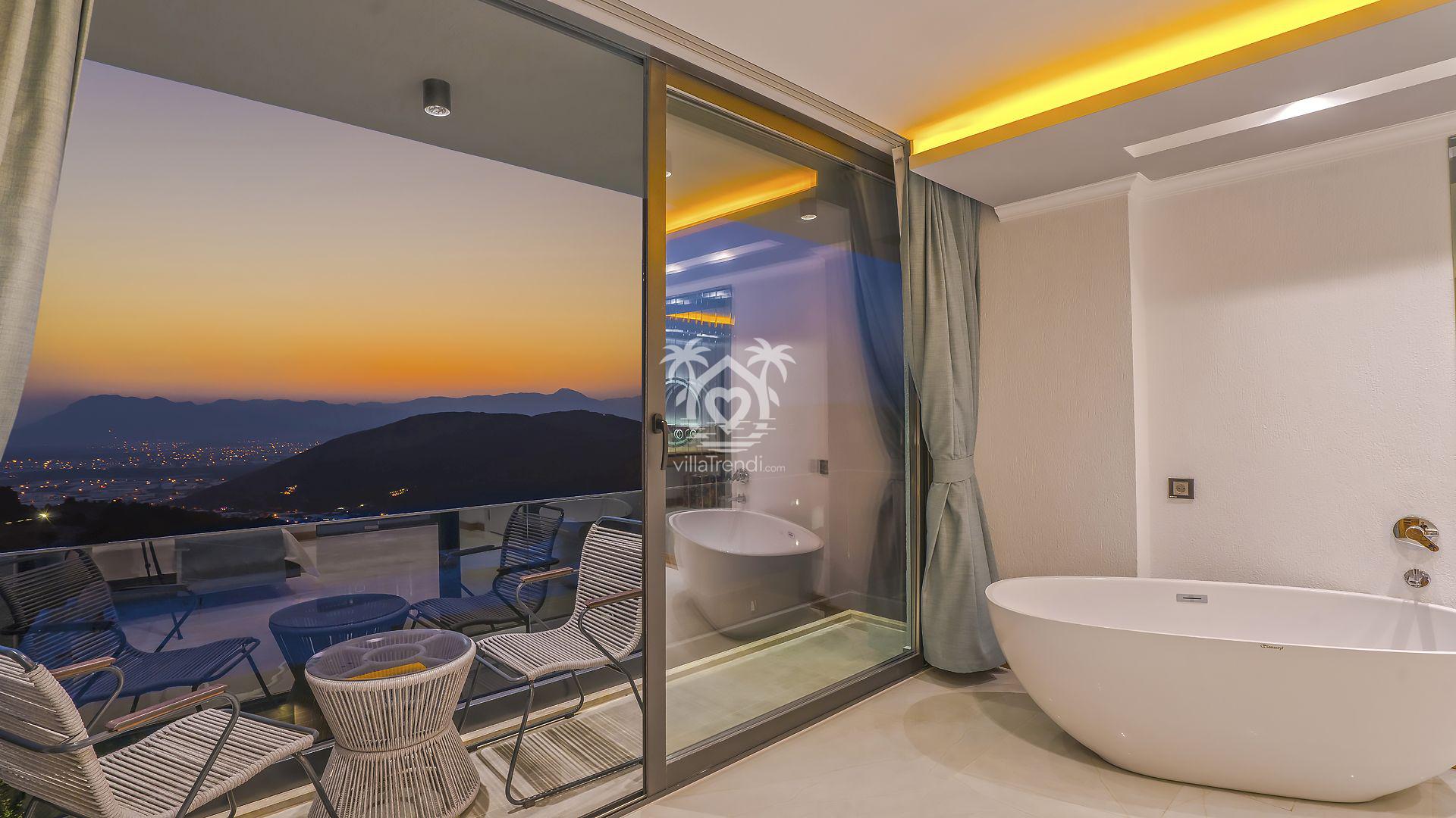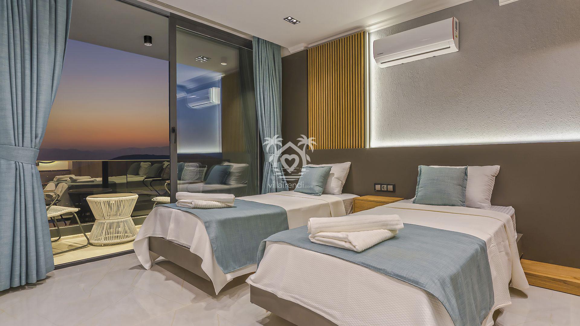 Süit Odalar: Villamızda 2 adet çift kişilik ve 1 adet iki tek kişilik yataklı oda bulunmaktadır. Birinci yatak odasındaki özel küvet detayı ise konforunuzu taçlandırıyor. 🛌🛀