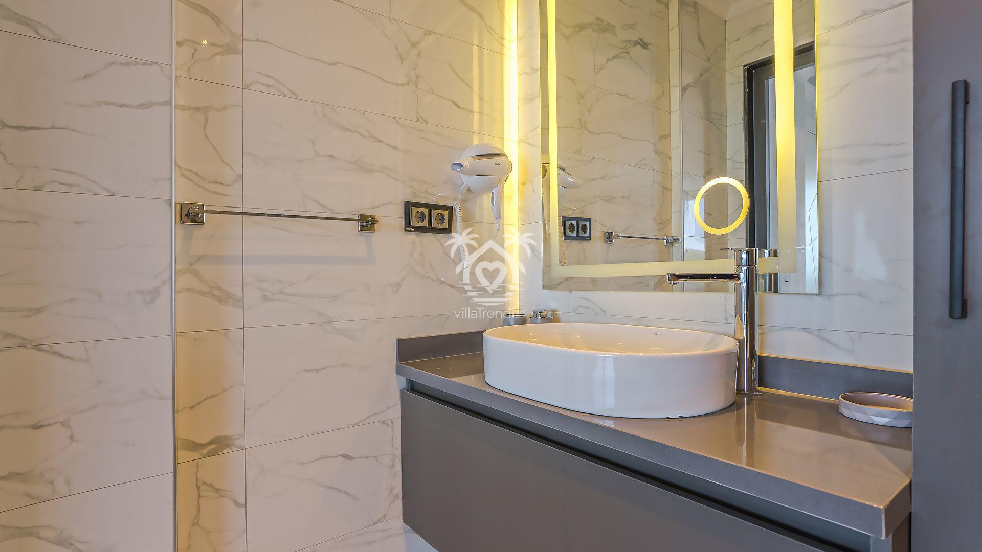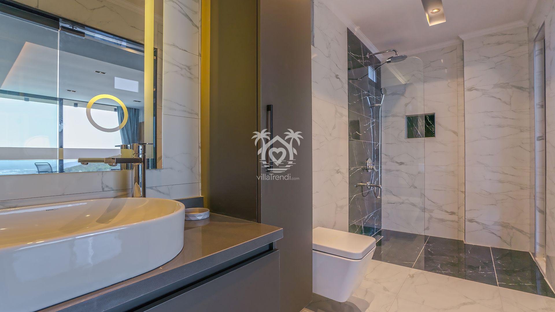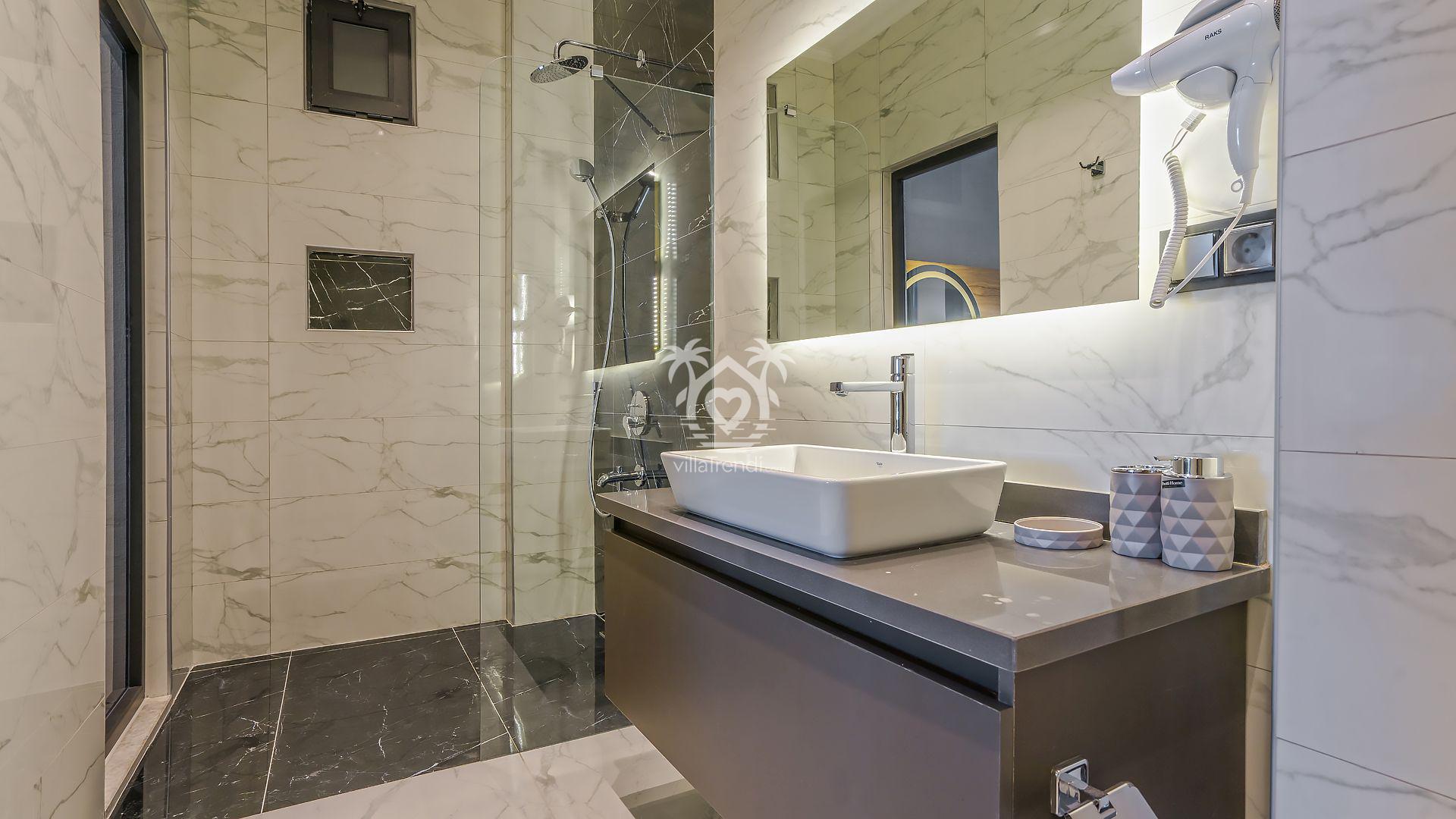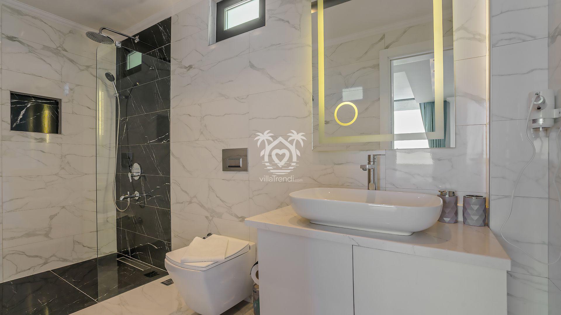 Süit Odalar: Villamızda 2 adet çift kişilik ve 1 adet iki tek kişilik yataklı oda bulunmaktadır. Birinci yatak odasındaki özel küvet detayı ise konforunuzu taçlandırıyor. 🛌🛀