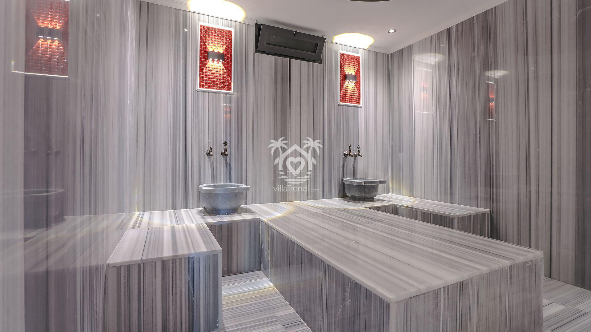 Kişisel Spa Merkezi: Tatilinize derin bir huzur katacak geleneksel Türk hamamı, sauna ve kapalı havuz başındaki lüks jakuzi sizi bekliyor. 🧖♂️🚿