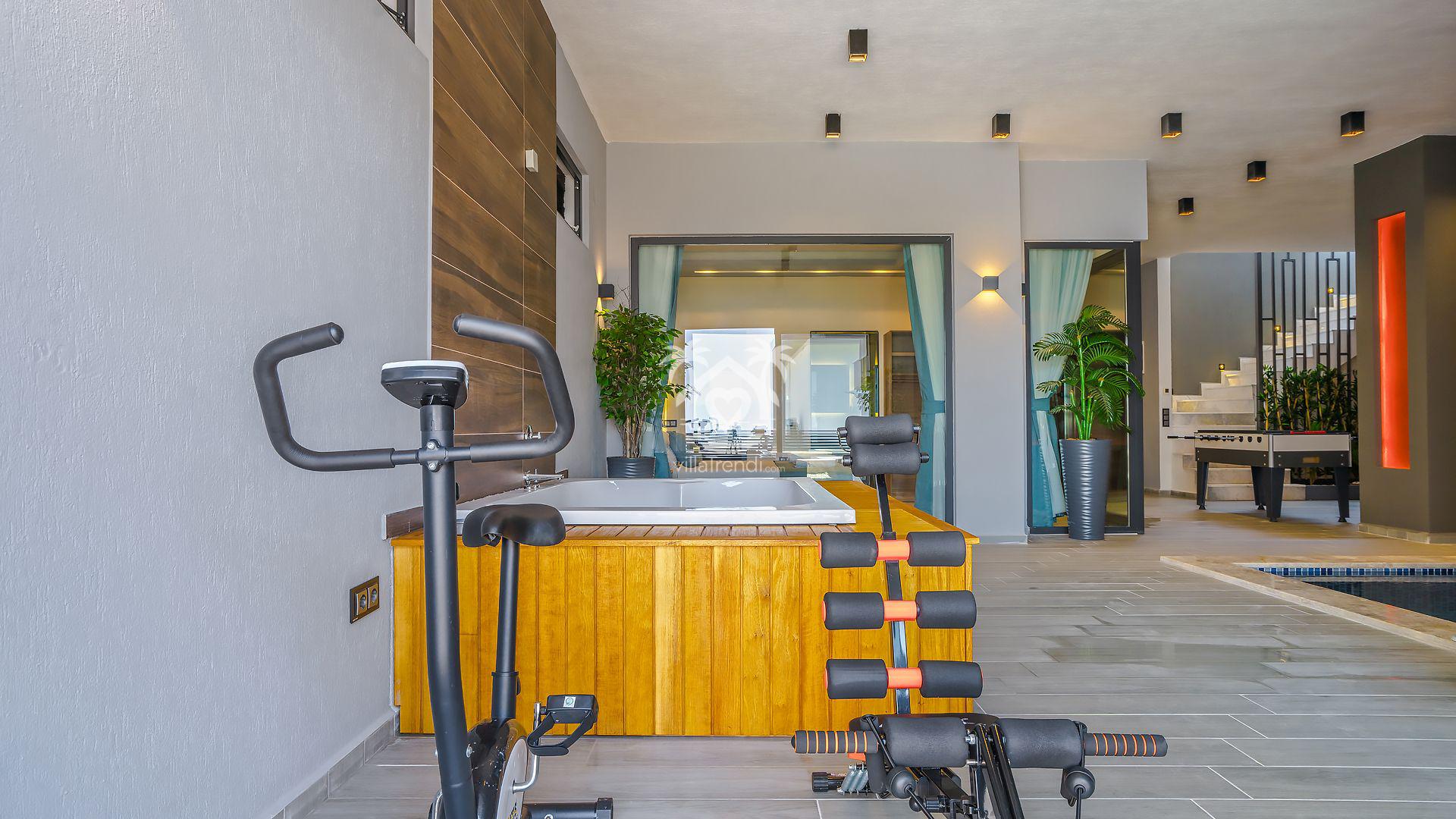Fit Kalın: Tatildeyken formunu korumak isteyenler için vücut geliştirme ve bisiklet gibi profesyonel spor aletleri mevcuttur. 🚲💪