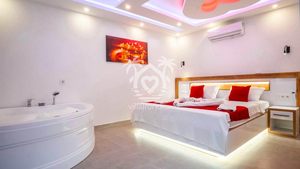 Villa Boğaziçi 2 Kalkan - Sarıbelen bölgesinde benzersiz bir tatil deneyimi sunar. Dört kişilik kapasite, geniş bahçe ve korunaklı havuz gibi özellikler tatil planlarınıza keyifli bir yön verir. İki yatak odalı yapısı ve üç yatak alternatifi sayesinde aileler veya küçük gruplar burada rahatlıkla konaklar. Ayrıca zarif jakuzi, modern Amerikan mutfak ve özel oturma alanı gibi detaylar lüks bir atmosfer yaratır.