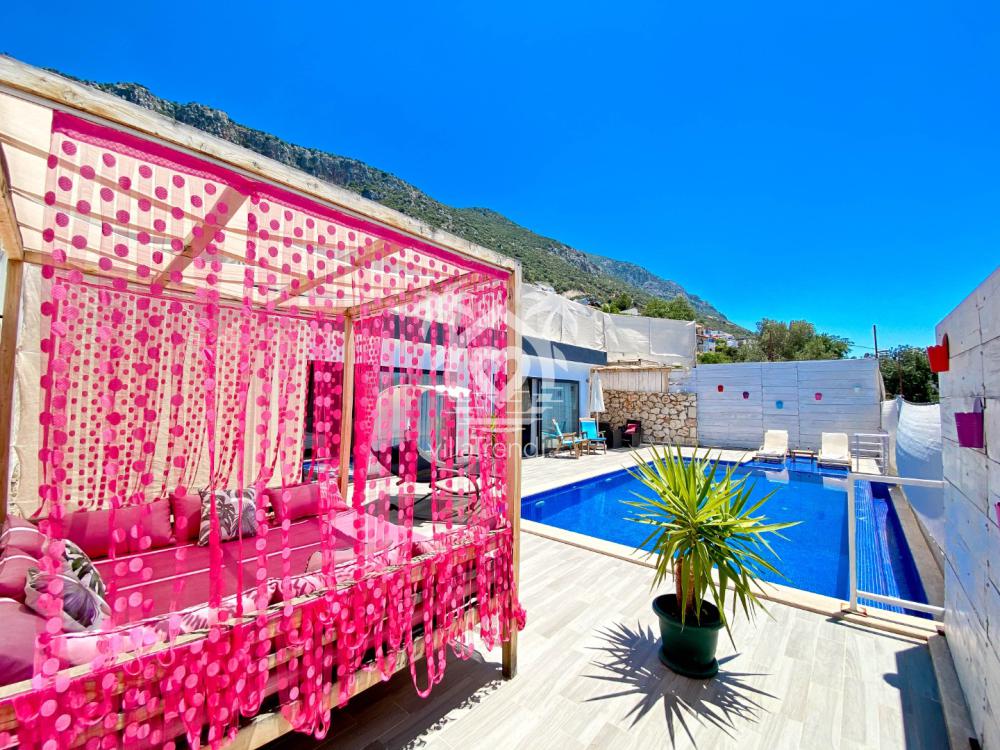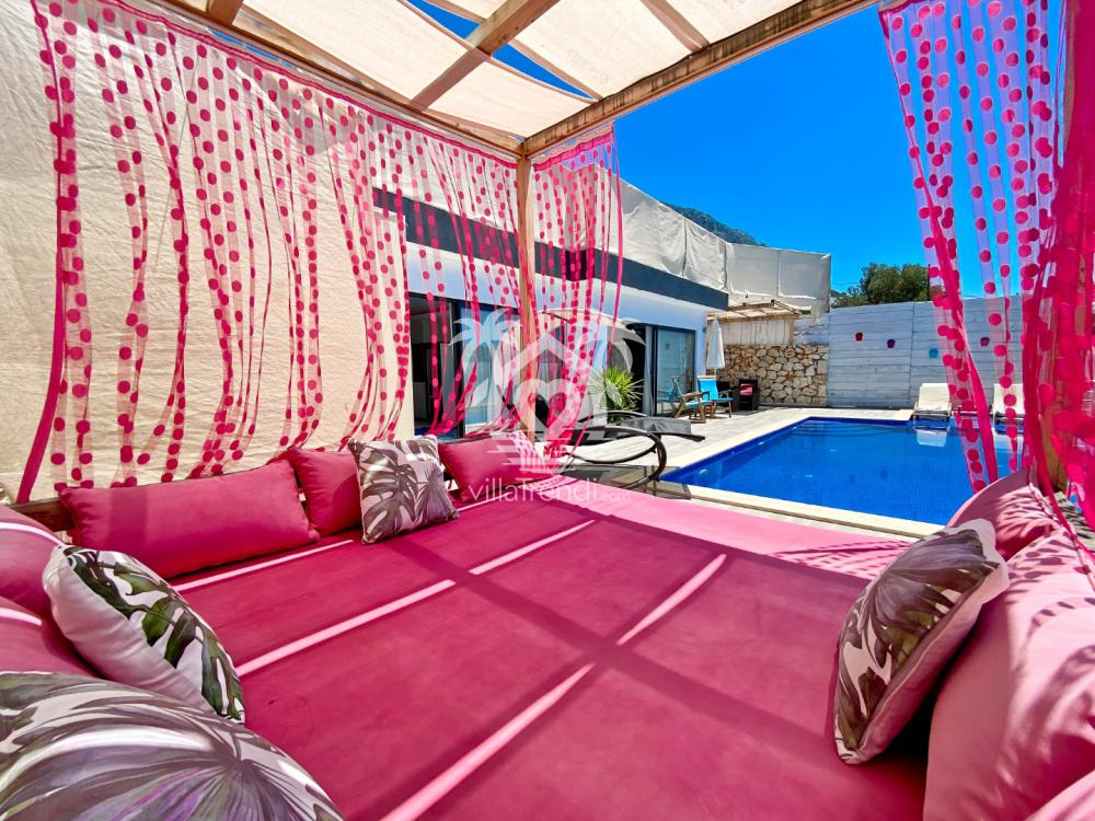 Deniz manzaralı Villa Sunshine, 6 kişilik geniş konaklama kapasitesiyle Kalkan’da, Kördere’de yer alıyor.