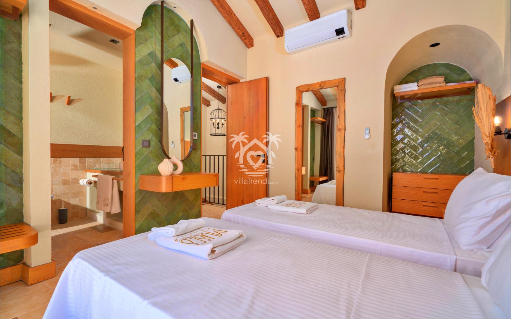 Süit Konaklama: Tamamı ebeveyn banyolu, klimalı ve özel tasarım mobilyalarla döşenmiş 3 geniş yatak odası. 🛌🚿