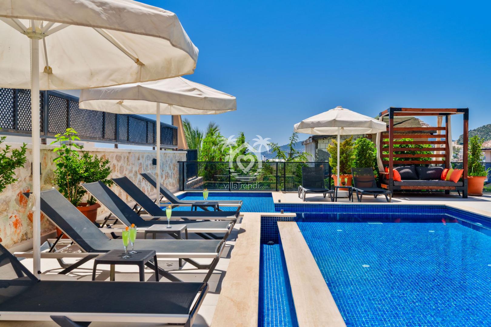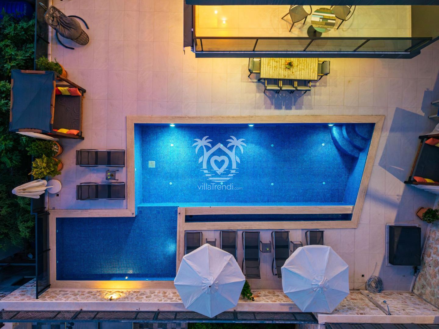 Dört Mevsim Havuz Keyfi: Geniş dış havuzun ve çocuk havuzunun yanı sıra, villamızın içinde yer alan ısıtmalı kapalı havuz sayesinde kış aylarında bile yüzmenin tadını çıkarabilirsiniz.
