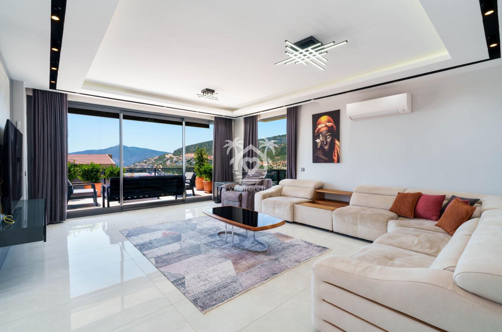 Kalkan merkezinde yer alan Villa Myros, 4 kişilik minimal fakat zengin bir konfora sahip.