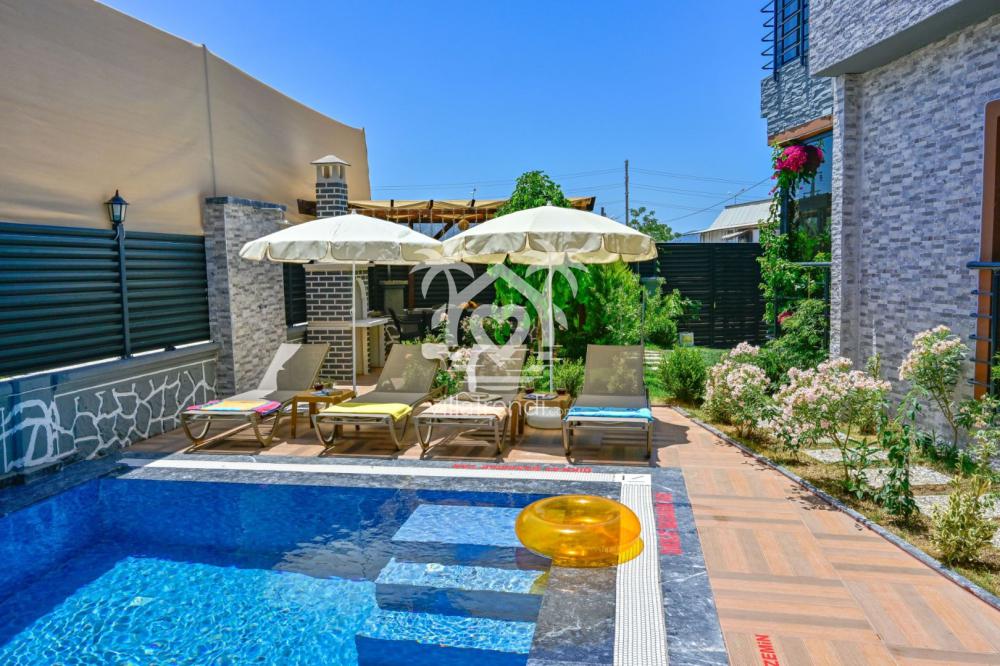 Fethiye'nin huzurlu ve yeşilliklerle çevrili Çamköy Bölgesi’nde konumlanan bu özel villa, geniş yaşam alanları ve yüksek konforuyla öne çıkıyor. Toplam 5 yatak odası ve 10 kişilik cömert konaklama kapasitesi sunan villamız, büyük ailelerin ve kalabalık arkadaş gruplarının rahat ve keyifli bir tatil geçirmesi için ideal bir sığınaktır.