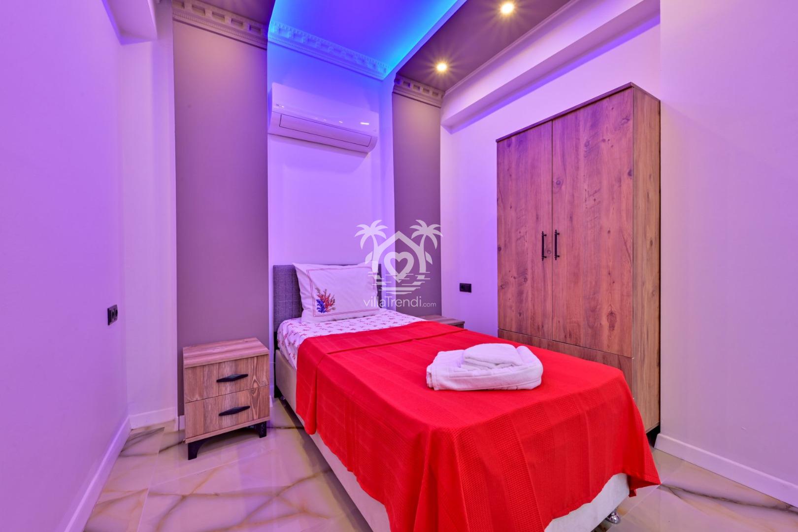 İki Adet İkiz Yataklı Oda: Dördüncü ve beşinci yatak odaları ise ikişer adet tek kişilik yatağa sahiptir ve bu odaların da kendilerine ait banyoları bulunmaktadır.