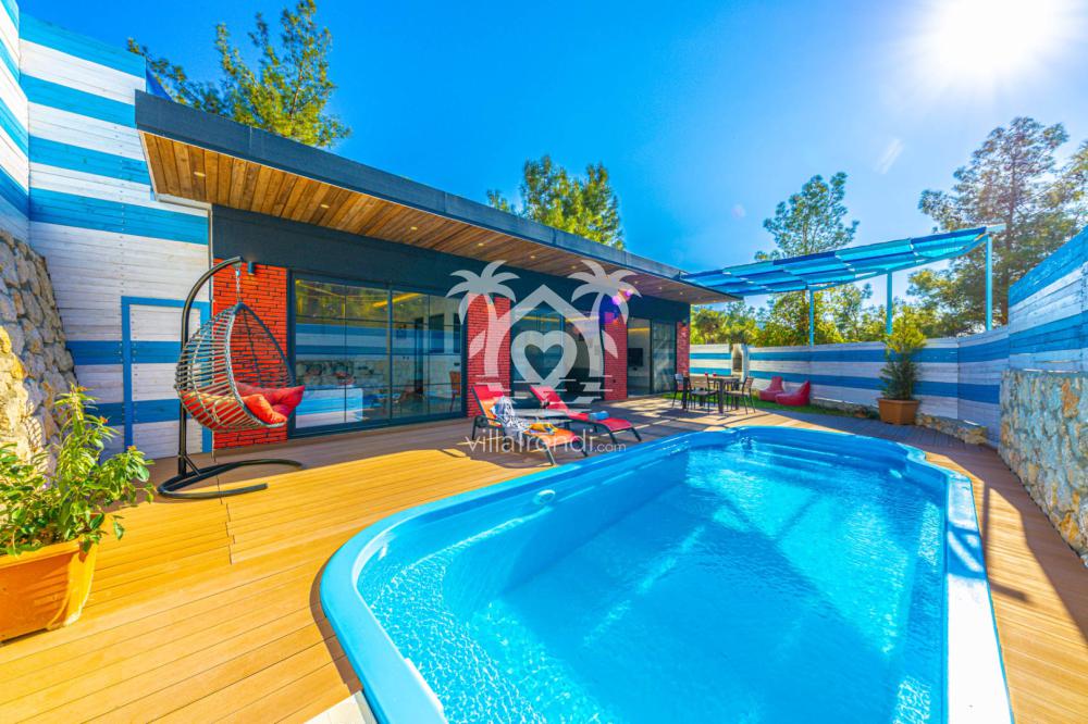 - Dış Mekan: Özel yüzme havuzu (havuz terası korunaklı), havuz terası, şezlonglar, güneş şemsiyesi, oturma alanı ve/veya yemek masası (terasta, manzaralı olabilir), barbekü alanı (çoğu villada bulunur), özel otopark, Wi-Fi internet bağlantısı.