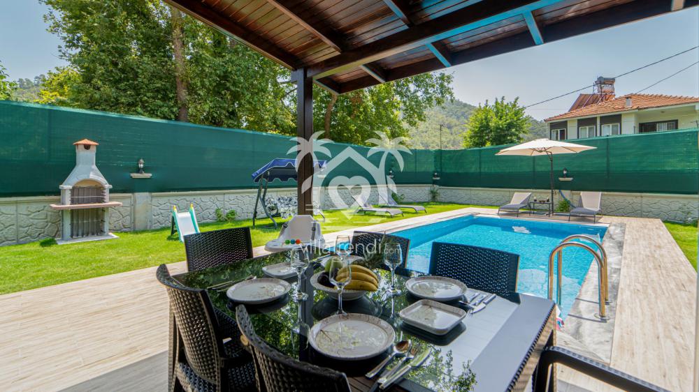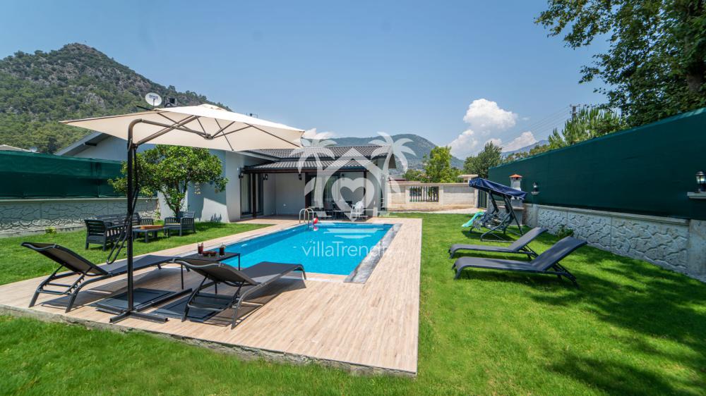 - Dış Mekan: Özel yüzme havuzu, geniş çim bahçe alanı, havuz terası, şezlonglar, güneş şemsiyesi, oturma alanı ve/veya yemek masası (bahçede veya terasta), barbekü alanı (çoğu villada bulunur), otopark, Wi-Fi internet bağlantısı.
