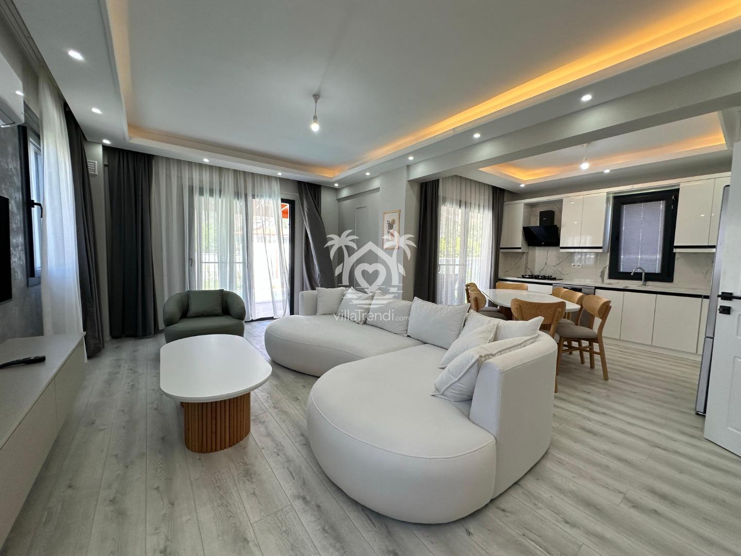 Ferah 4+1 Tasarımı: Aydınlık bir salon, tüm hünerlerinizi sergileyebileceğiniz tam donanımlı modern mutfak ve tatil boyunca dünyadan kopmamanız için yüksek hızlı Wi-Fi. 🖥️🍳