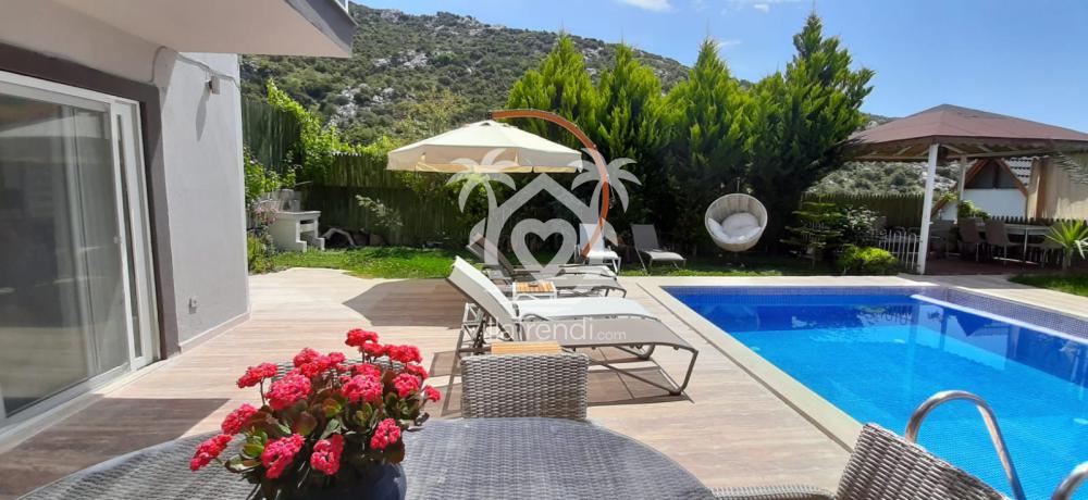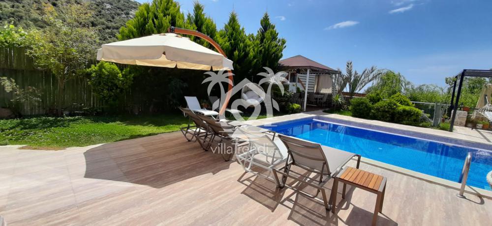Kalkan İslamlar’da panoramik manzaralı Villa Manzara: 6 kişilik, özel havuzlu, doğayla iç içe, hijyen garantili ve huzurlu kiralık villa.