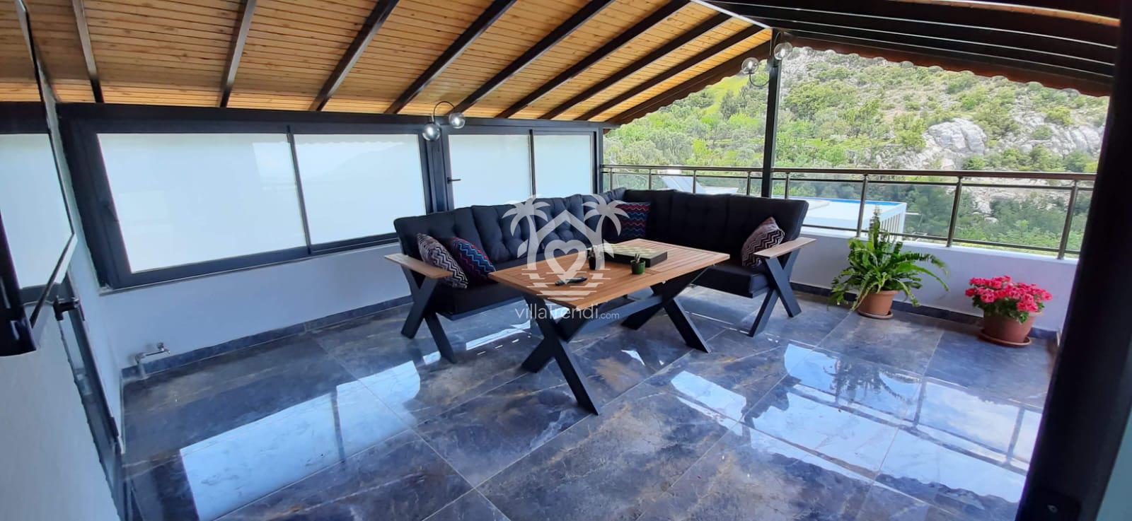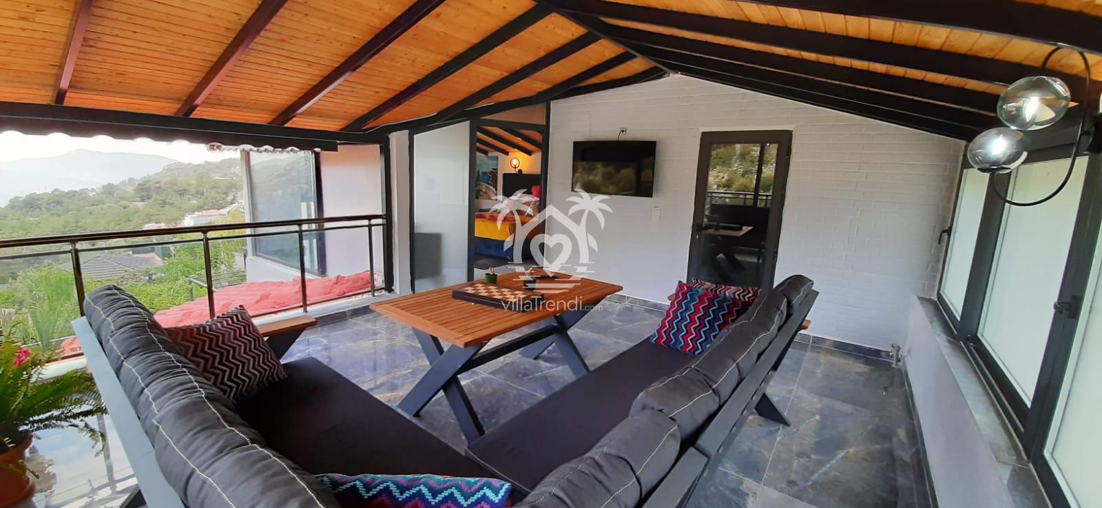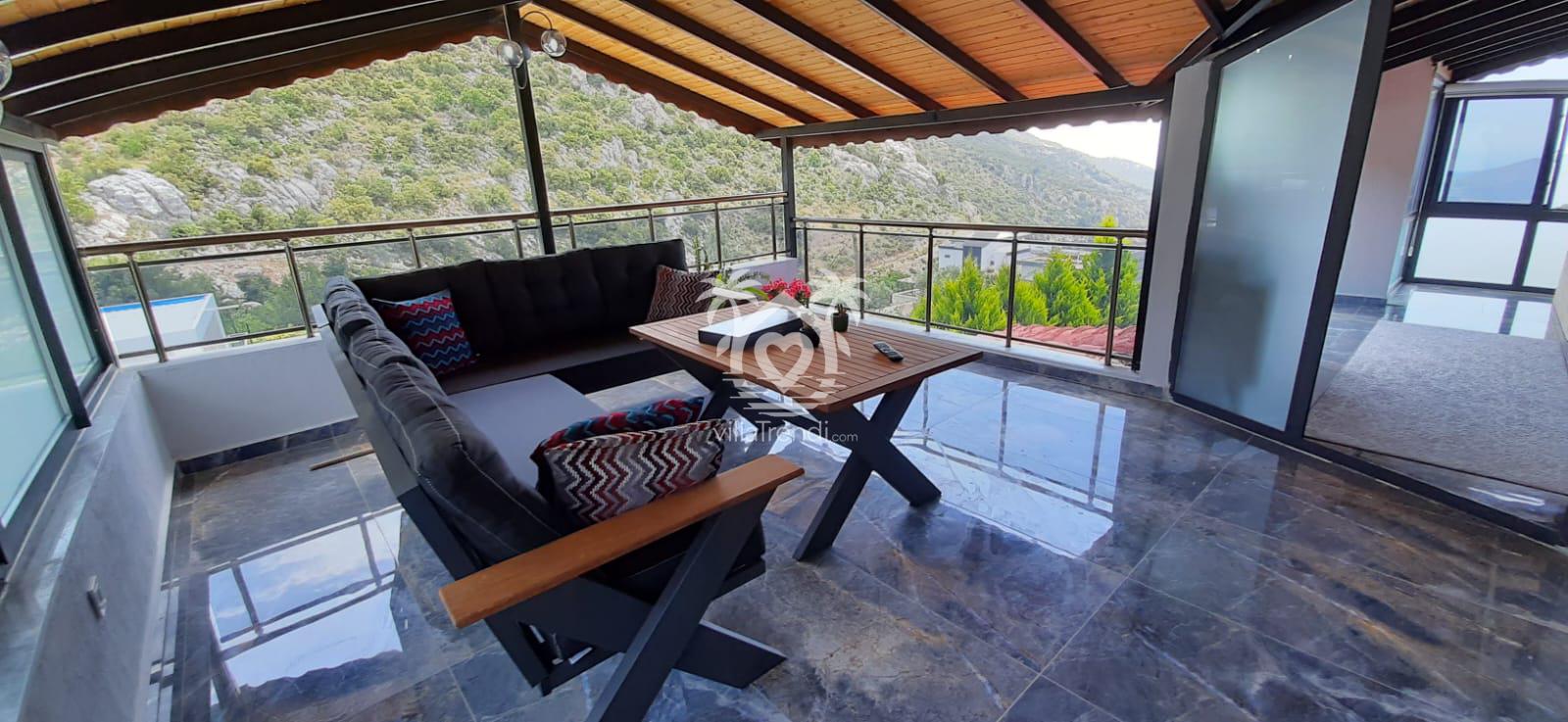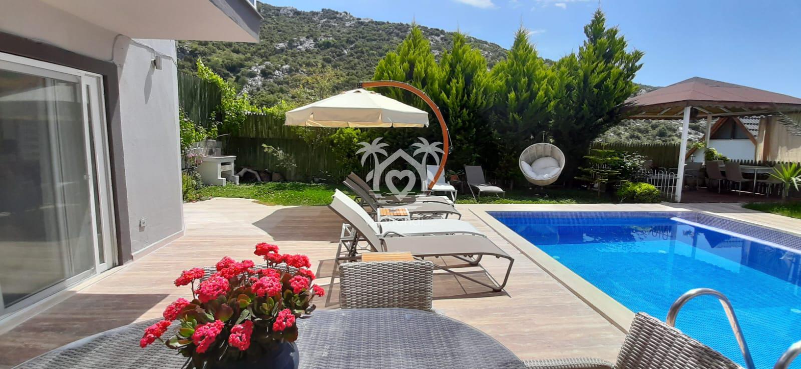 Kalkan İslamlar’da panoramik manzaralı Villa Manzara: 6 kişilik, özel havuzlu, doğayla iç içe, hijyen garantili ve huzurlu kiralık villa.
