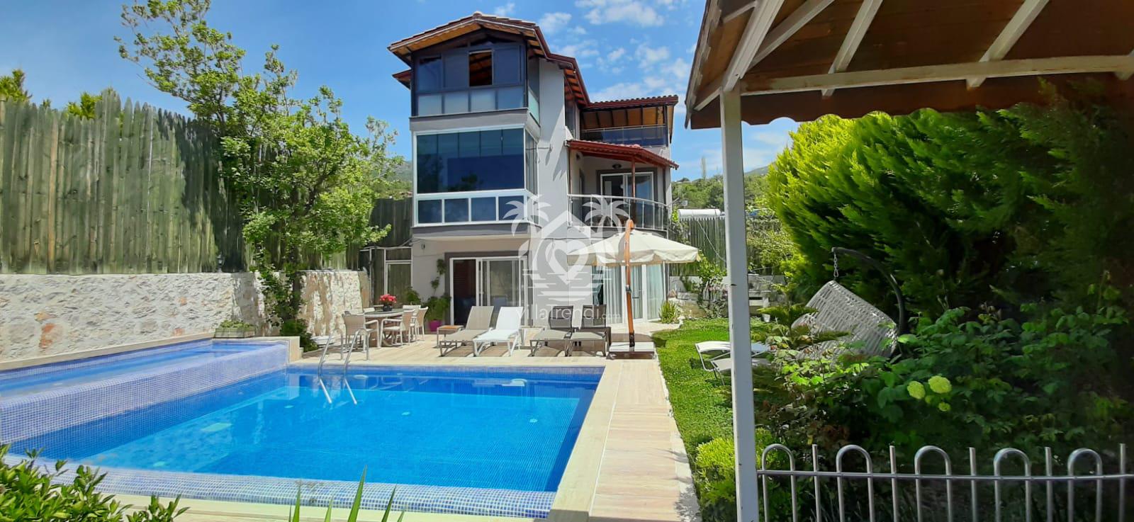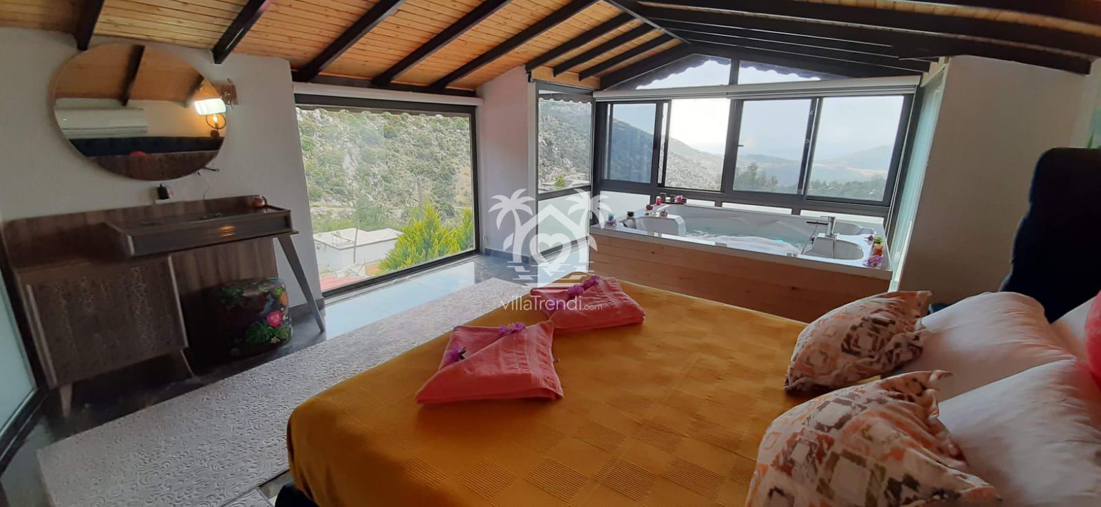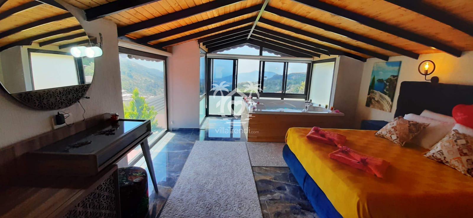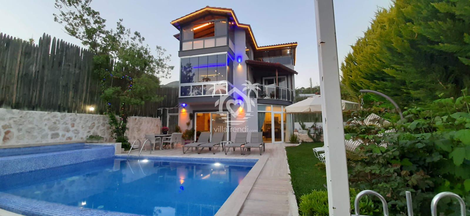 Kalkan İslamlar’da panoramik manzaralı Villa Manzara: 6 kişilik, özel havuzlu, doğayla iç içe, hijyen garantili ve huzurlu kiralık villa.