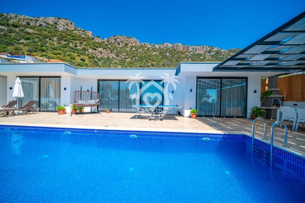 - Dış Mekan: Özel yüzme havuzu (korunaklı), geniş havuz terası (deniz manzaralı), şezlonglar, güneş şemsiyesi, oturma alanı ve/veya yemek masası (terasta, manzaralı olabilir), barbekü alanı. Arka bahçede mini oyun parkı, langırt ve masa tenisi.