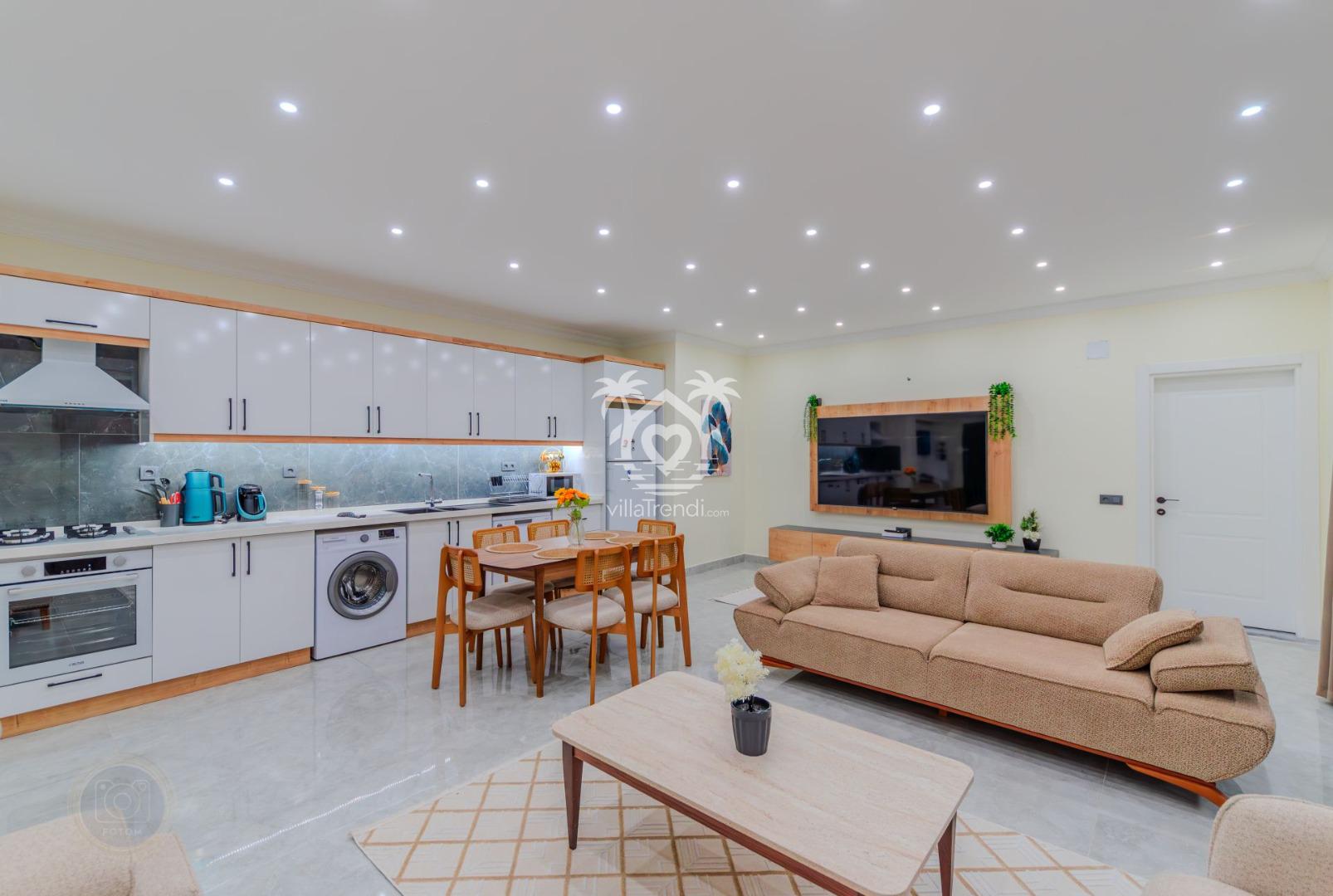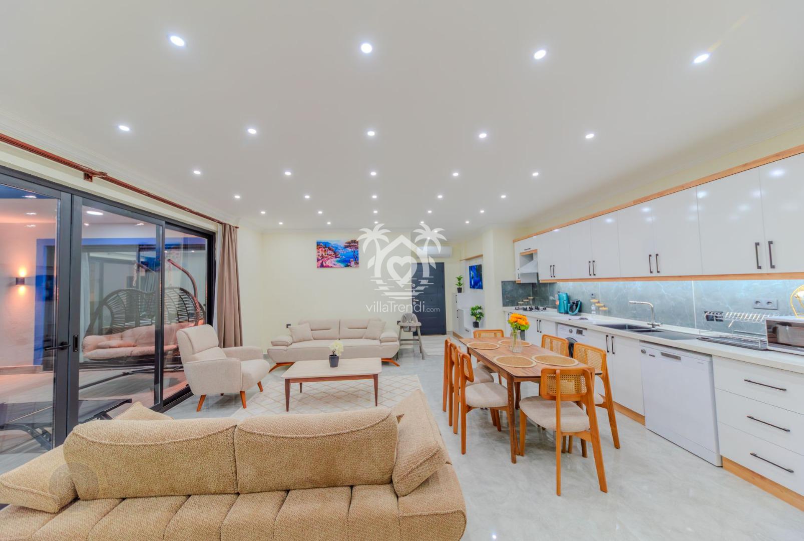 Modern Yaşam: Şık bir oturma grubu ve tam donanımlı mutfağıyla iç mekanımız, ev konforunu lüks detaylarla birleştiriyor.