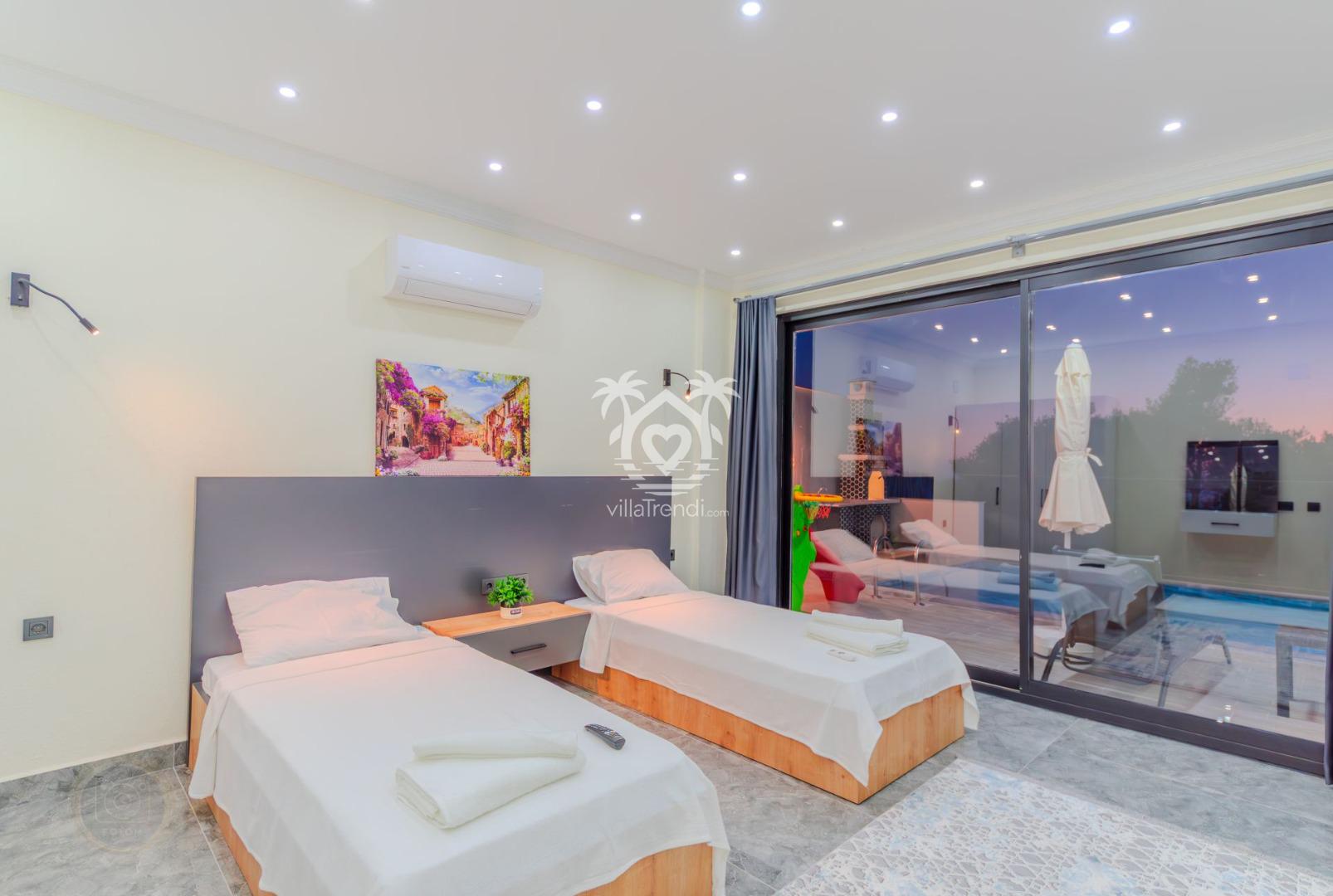 Süit Odalar: Villamızda 1 adet çift kişilik (double) ve 2 adet tek kişilik (single) yataktan oluşan, her biri özel banyo ve tuvalete sahip iki konforlu oda bulunmaktadır.