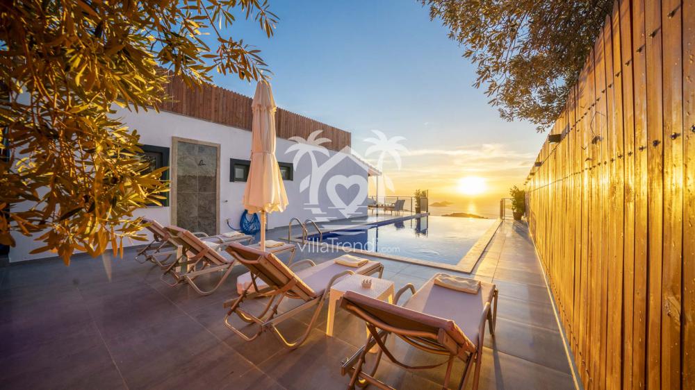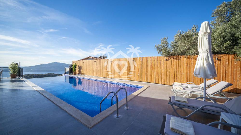 Deniz manzaralı Villa Sunshine, 6 kişilik geniş konaklama kapasitesiyle Kalkan’da, Kördere’de yer alıyor.