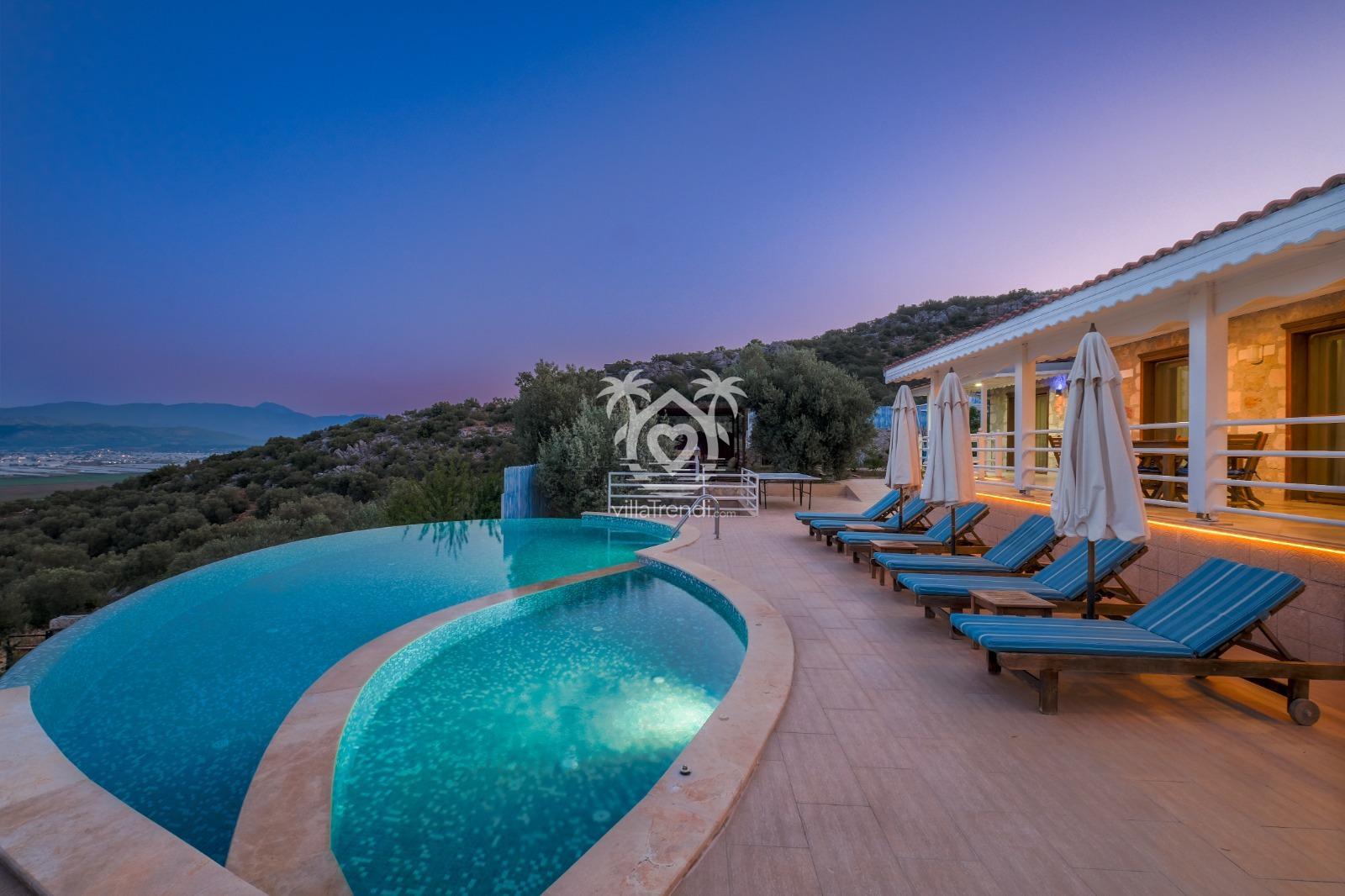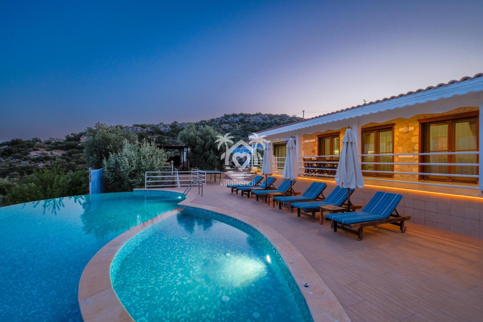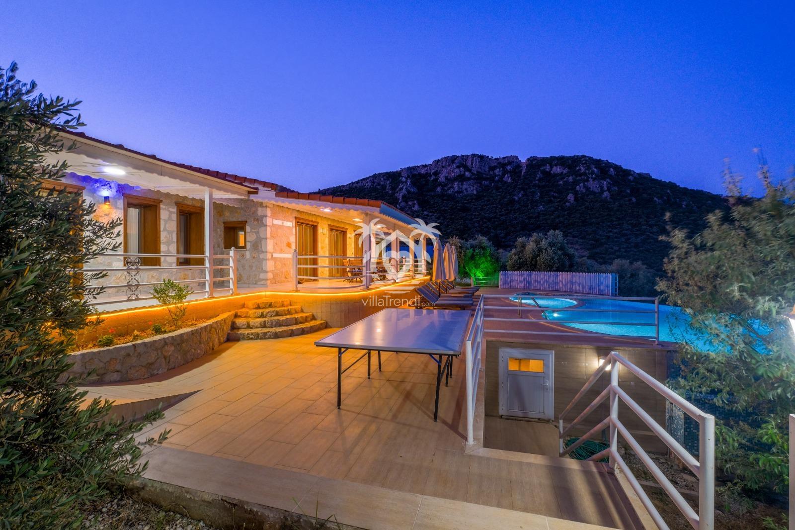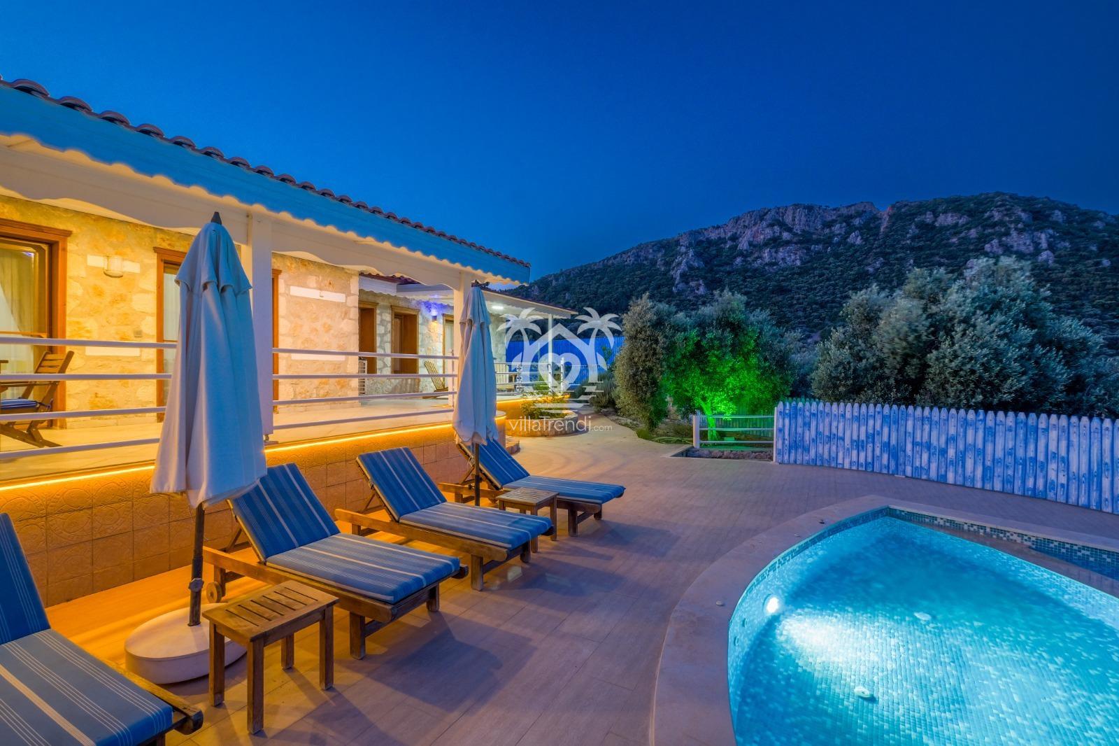 Villa Likya Premium, Antalya'nın Kalkan beldesinin Yeşilköy bölgesinde konumlanmış, doğa ile iç içe huzurlu bir tatil imkanı sunan 3 yatak odalı özel bir villadır.
