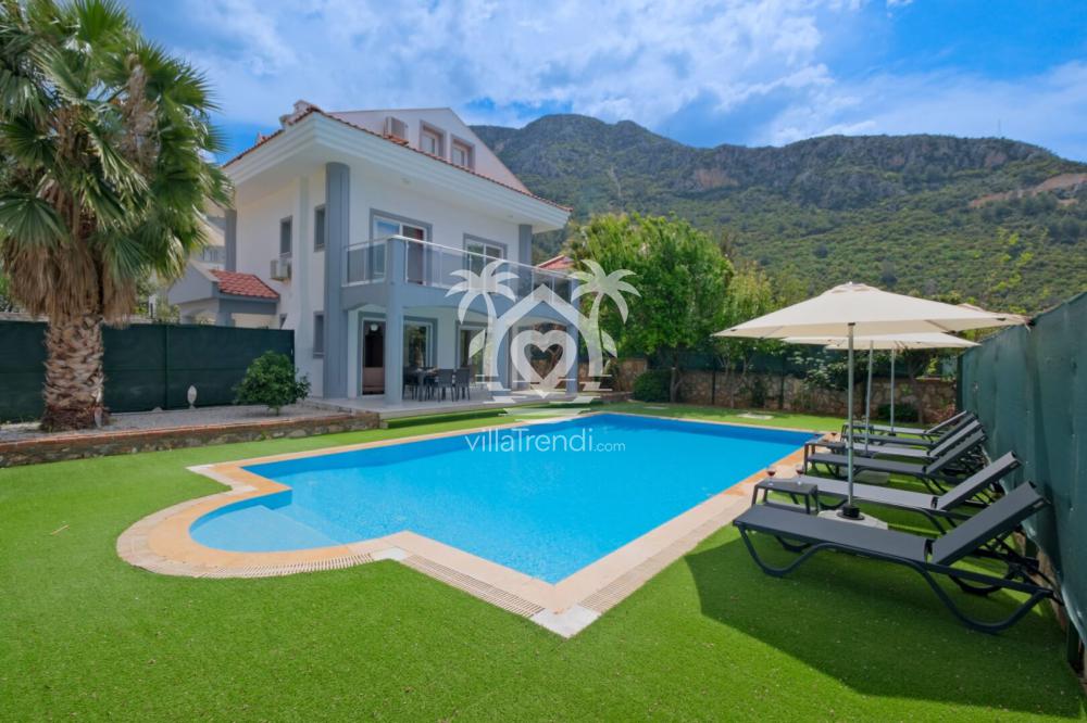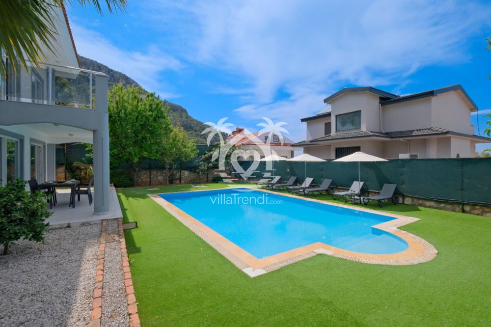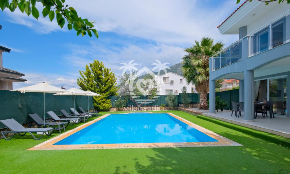 Villanın merkezi konumu, Ölüdeniz'in eşsiz güzelliklerine kolayca ulaşım imkânı sağlamasıyla öne çıkar. Oldukça ferah ve geniş bahçe alanında, misafir sayısına uygun şezlong takımı, rahat bir oturma grubu ve barbekü alanı bulunmaktadır. Havuz terasına açılan ve zevkle döşenmiş konforlu oturma odası, villanın iç mekânının şıklığını yansıtır. Tam donanımlı mutfak, misafirlerin kendi yemeklerini hazırlayabilecekleri tüm olanakları sunar.