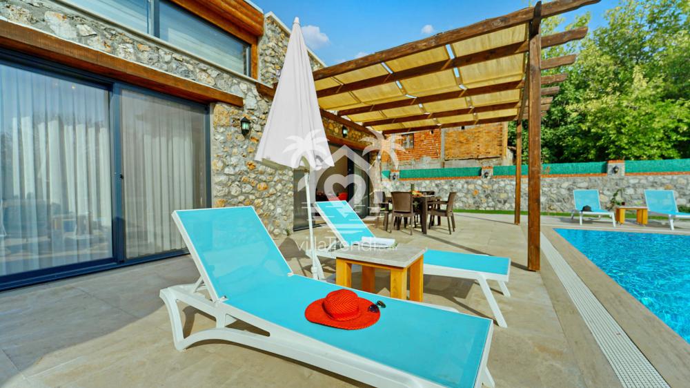 Dikdörtgen biçimli, 10 metre uzunluğunda ve 4,5 metre genişliğindeki özel havuz, korunaklı yapısı sayesinde dışarıdan görülmemektedir. Böylece gün boyu özgürce vakit geçirebilirsiniz. Yemek masası ve barbekü alanı bahçede hoş sohbetlere ev sahipliği yapar. Meraklıları için Fethiye - Kayaköy, tabiatla iç içe bir tatil vadeder. Kayaköy’ün tarihi kalıntıları ve yeşilin her tonunu bulabileceğiniz panoraması, keşif ruhunu körükler. Üstelik kısa sürede çevredeki koylara ulaşmak mümkündür. Fethiye - Kayaköy Kiralık Villa arayanlar için bölge, huzurlu ve doğal yapısıyla unutulmaz anılar bırakır.