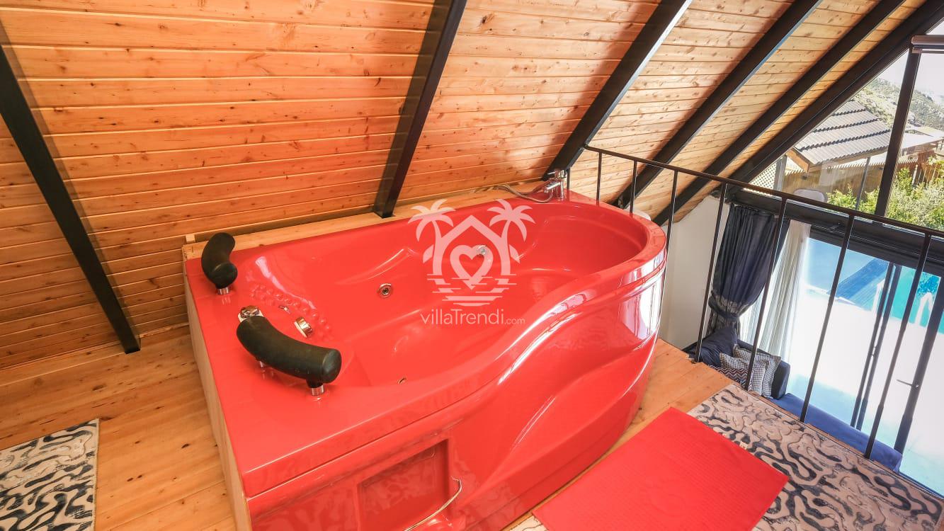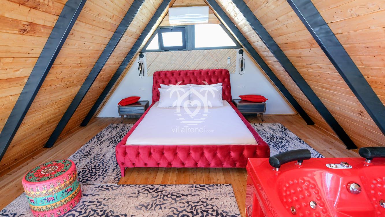 Süit Balayı Odası: Üst katta yer alan yatak odasında, tüm yılın yorgunluğunu atabileceğiniz lüks bir jakuzi bulunmaktadır. Odada ayrıca klima ve size özel banyo/WC mevcuttur.