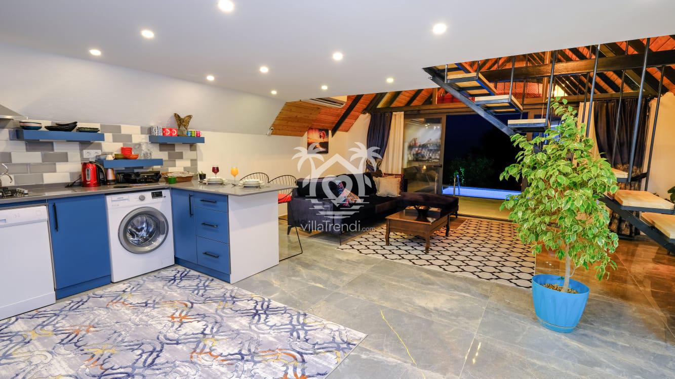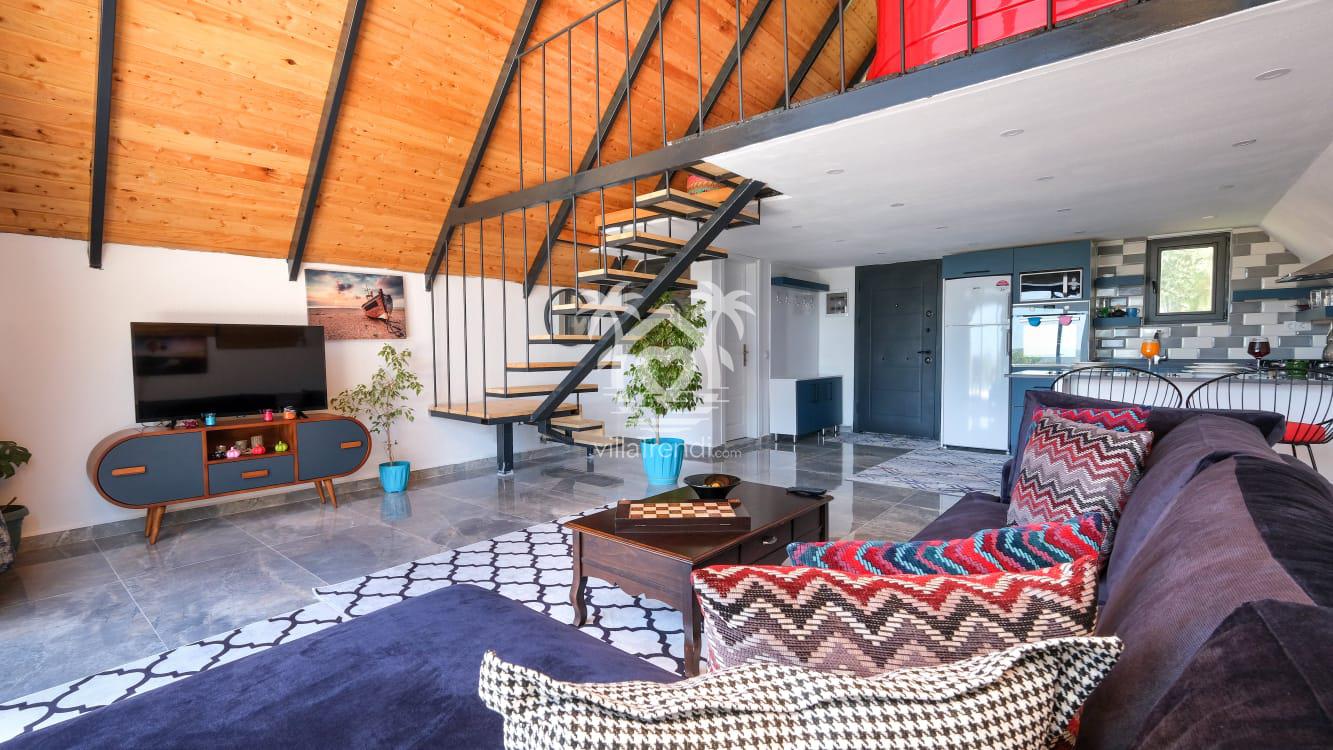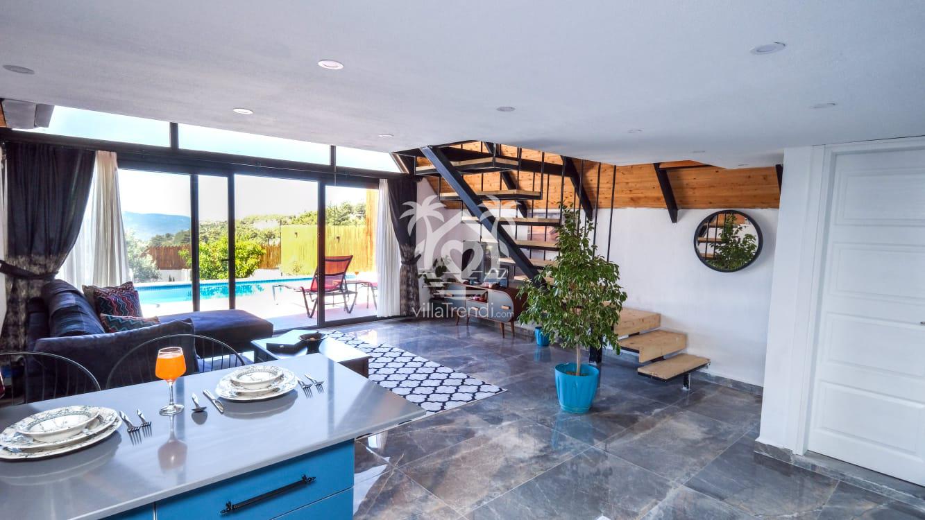 Villamız, şık ve kaliteli eşyalarla donatılmış ferah yaşam alanları sunar: