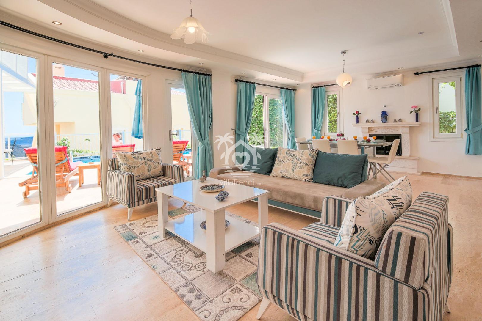 Kalkan merkezinde yer alan Villa Myros, 4 kişilik minimal fakat zengin bir konfora sahip.