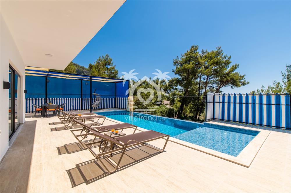 - Geniş Havuz Terası: Villanın geniş havuz terası, güneşlenmek, dinlenmek, sevdiklerinizle keyifli sohbetler etmek veya açık havada yemek yemek için ideal bir alandır. Eşsiz doğa manzarası eşliğinde unutulmaz anlar yaşayabilirsiniz.