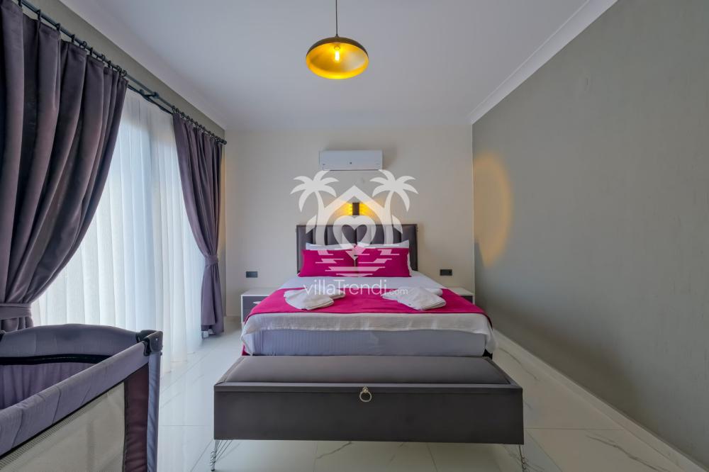 - 2. Yatak Odası: Çift kişilik yatak, klima, komodin, makyaj masası, giysi dolabı ve ebeveyn banyo ve tuvalet mevcuttur.