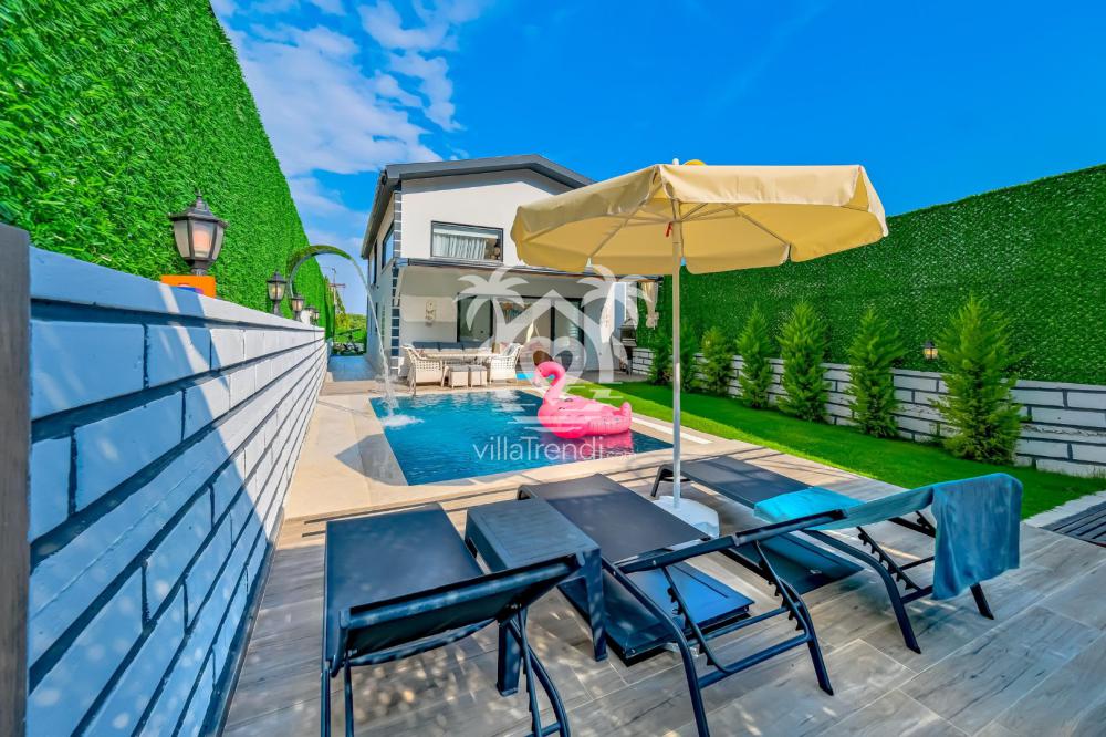 Havuz terasında bulunan konforlu şezlonglarda güneşin tadını çıkarabilir, bahçe masasında leziz yemekler yiyebilir, salıncakta keyifli anlar yaşayabilirsiniz.