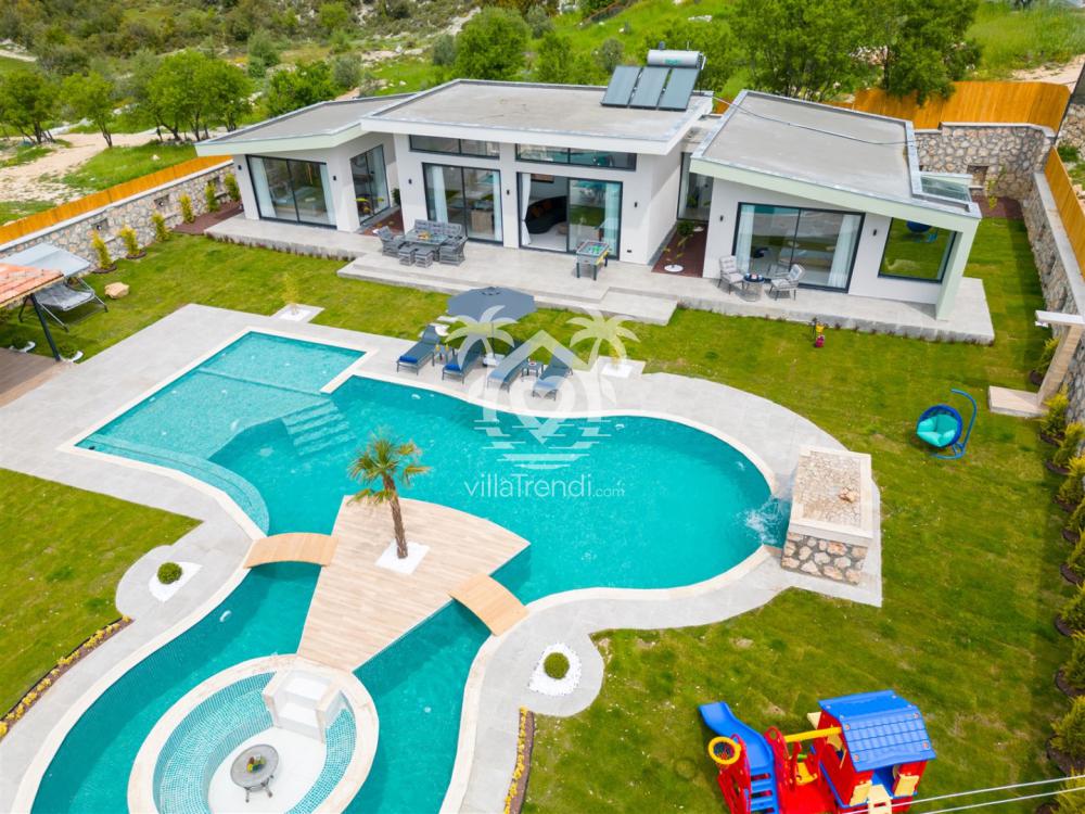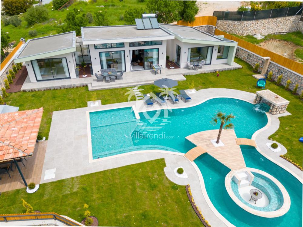 - Göz Alıcı Özel Havuz: Villanın estetik dış mimarisiyle uyumlu özel havuz, serinlemek, eğlenmek ve güneşin tadını çıkarmak için ideal bir alandır. Geniş havuz terasında şezlonglar ve güneş şemsiyeleri ile keyifli anlar sizi bekliyor.